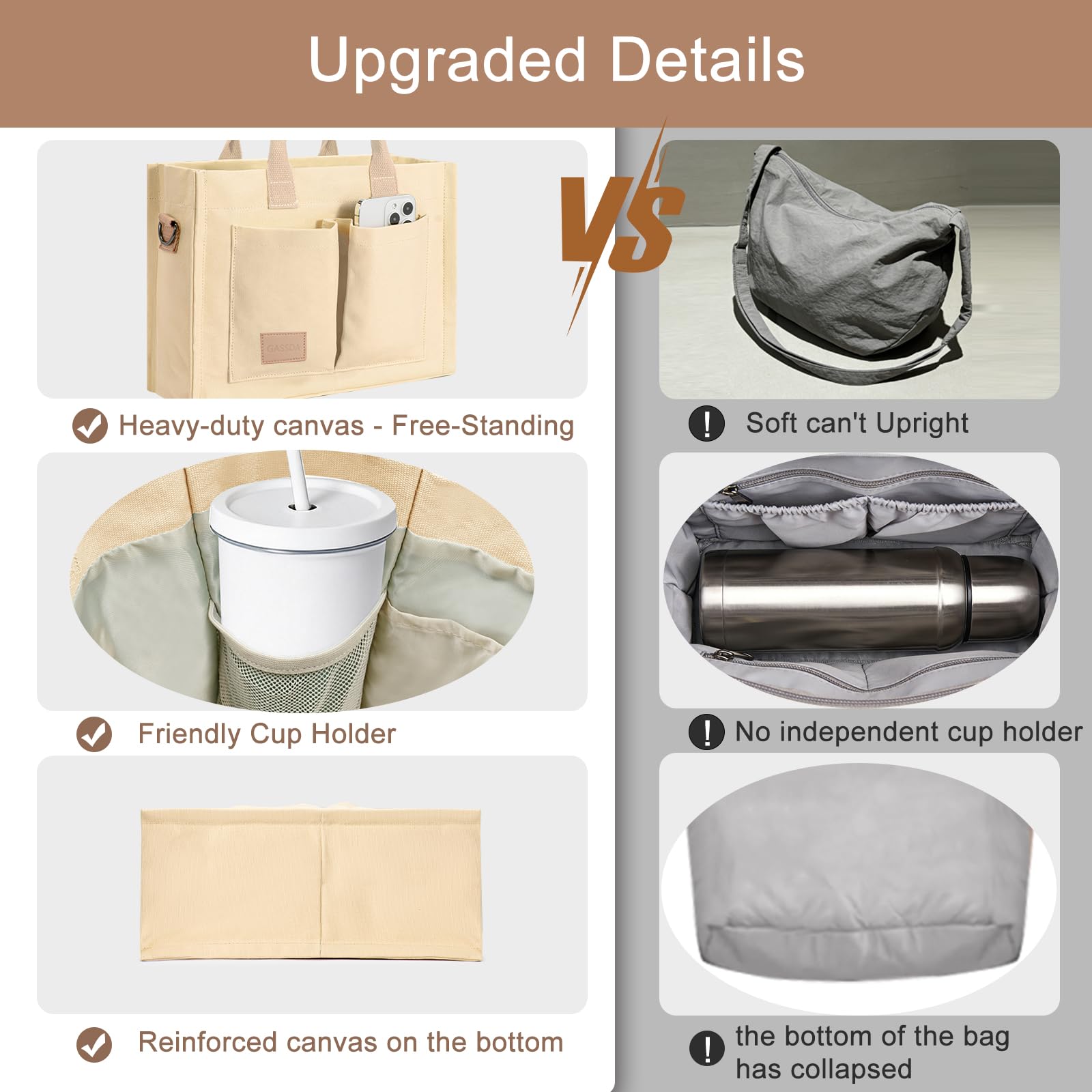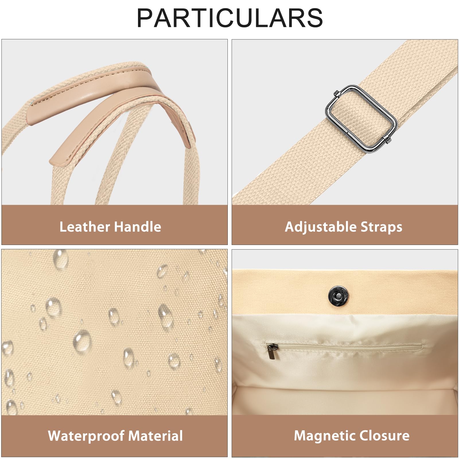 Secure Closure & Thick Reinforced Base: Comes with top zipper closure for anti-theft protection and private storage. The sturdy thickened bottom offers strong support, keeps the tote standing steadily, holds heavy items easily and maintains the original shape without collapsing.