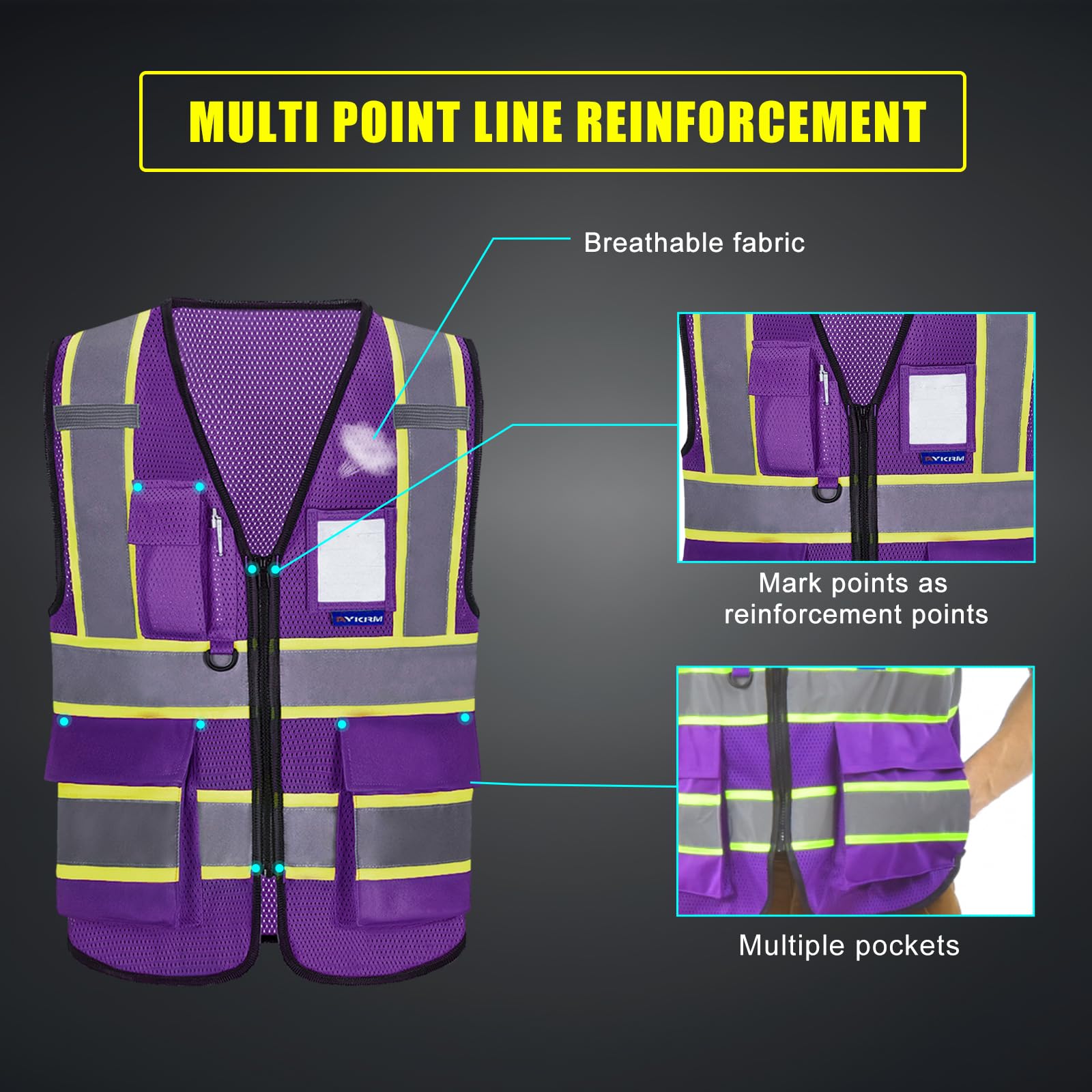 ✅【MATERIALS】MATERIALS: 100% polyester high visibility reflective material, lightweight and breathable, washable and durable.Black edging is not easy to dirty easier to match.High visibility safety vests There are yellow, orange, pink, blue, purple, green, white, black, red and navy . You can choose the color you like. Different colors can also distinguish different departments or positions. Customers who prefer a looser fit should order 1-2 sizes larger.