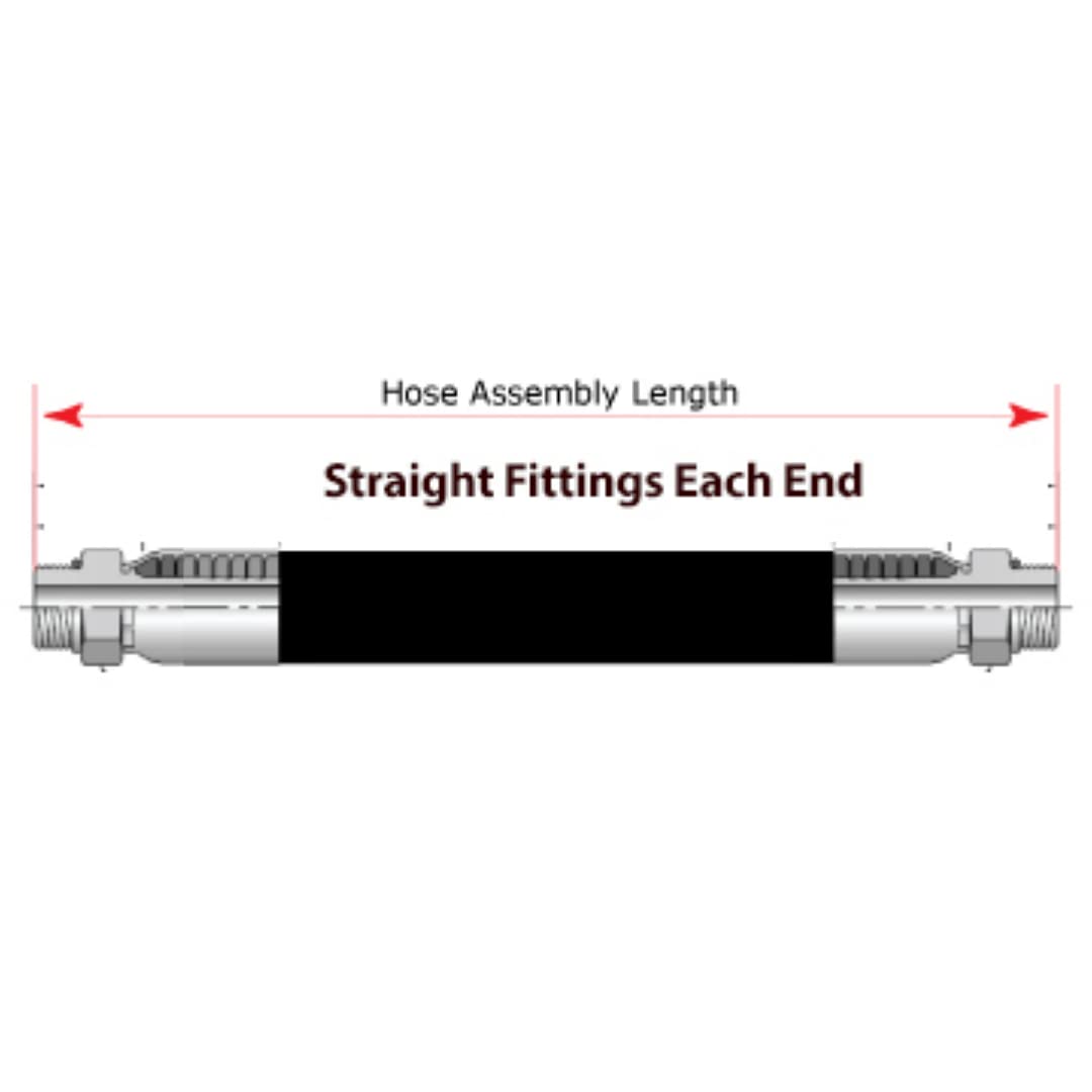 Designed for hydraulic systems with petroleum and water-base fluids, or general industrial applications. Hose assembly crimped on both ends to male 3/4" NPTF thread fittings (part number: MP-12-12). Reinforced 2-wire SAE 100R2AT hydraulic hose with 3/4" inside diameter. Max working pressure of 3,120 PSI and 9.5" minimum bend radius.