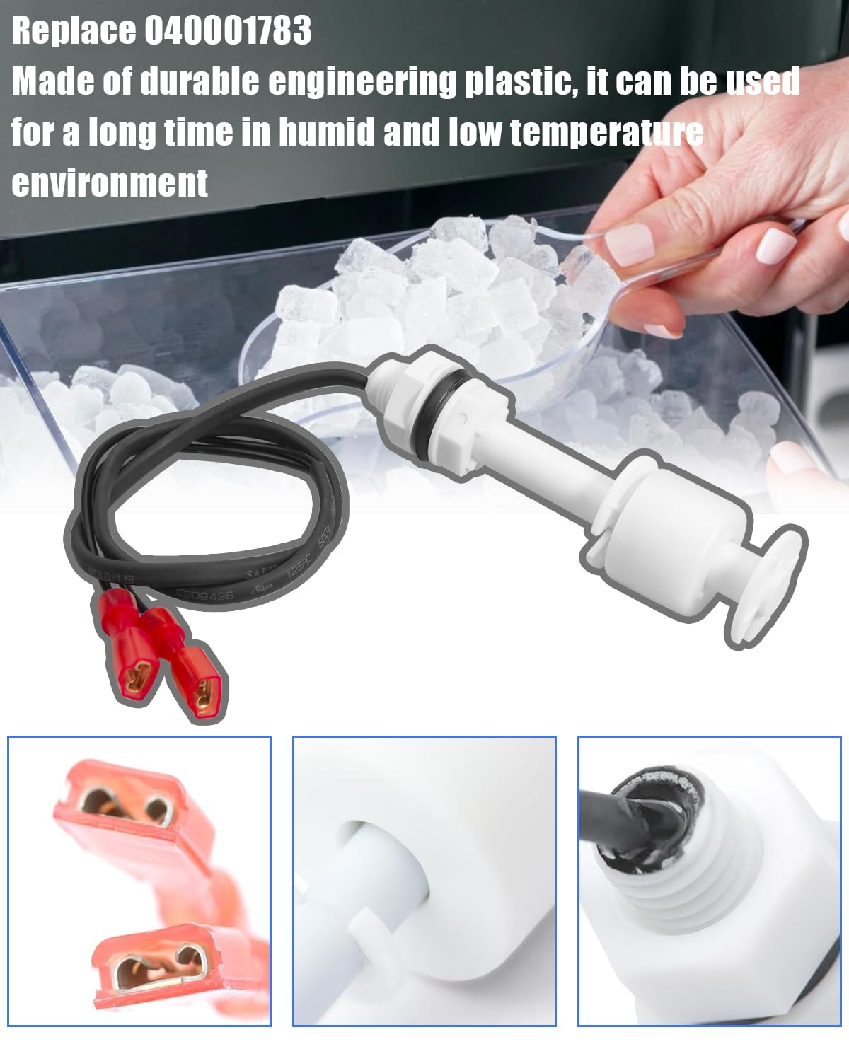 Compatible Models: Ice float switch fit for manitowoc ice machines U140 190 240 UD0140AC-2511 UD0140A UD0140AE UD0140W UD0140WE UD0190A UD0190AE UD0240A UD0240AE, replace 040001783, see the description below for details