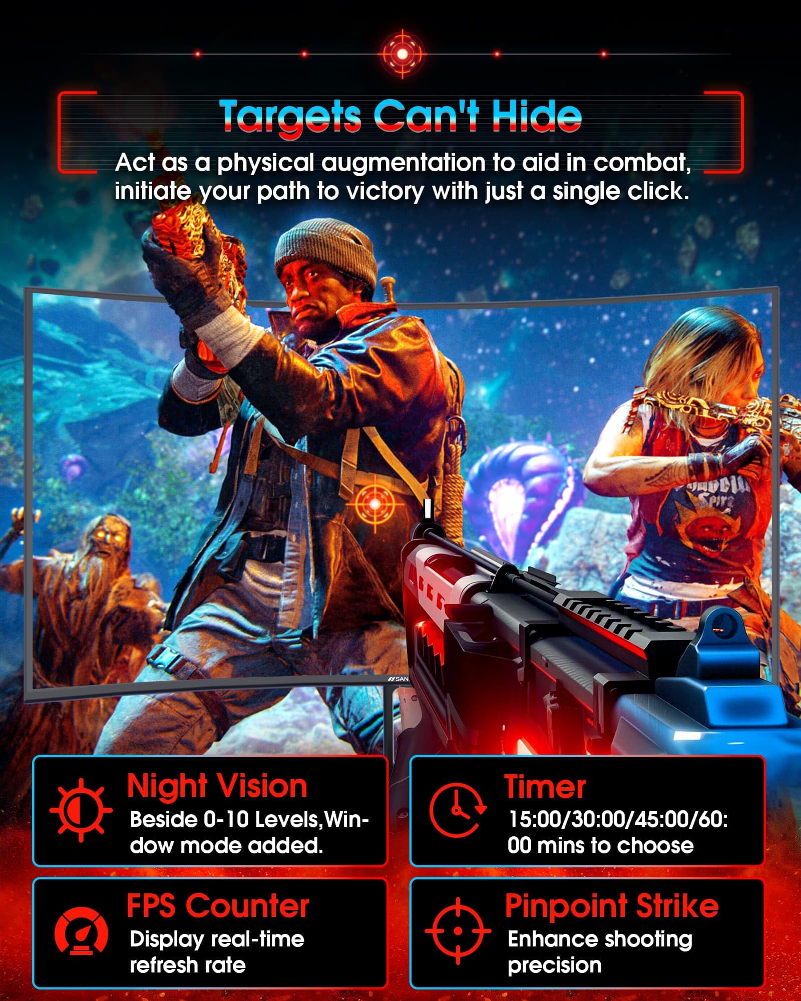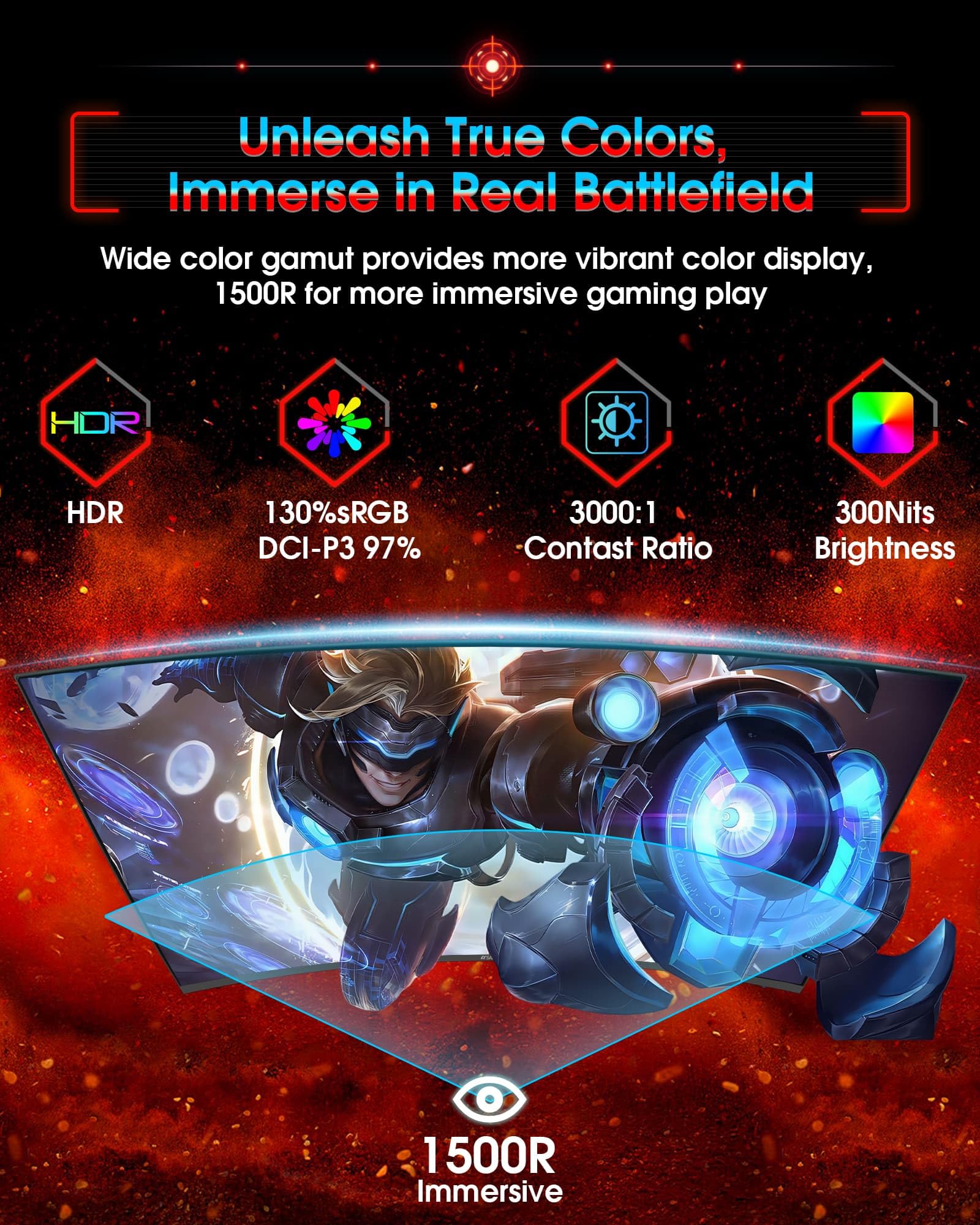 Upgraded Game-specific Display: 21:9 & PBP/PIP(game & chat all in one) | Night Vision(window mode optional) | FPS/RTS/RACING Modes| 1500R Curved| DCI-P3 97%/130%sRGB Color Gamut| FreeSync|MPRT 1MS.