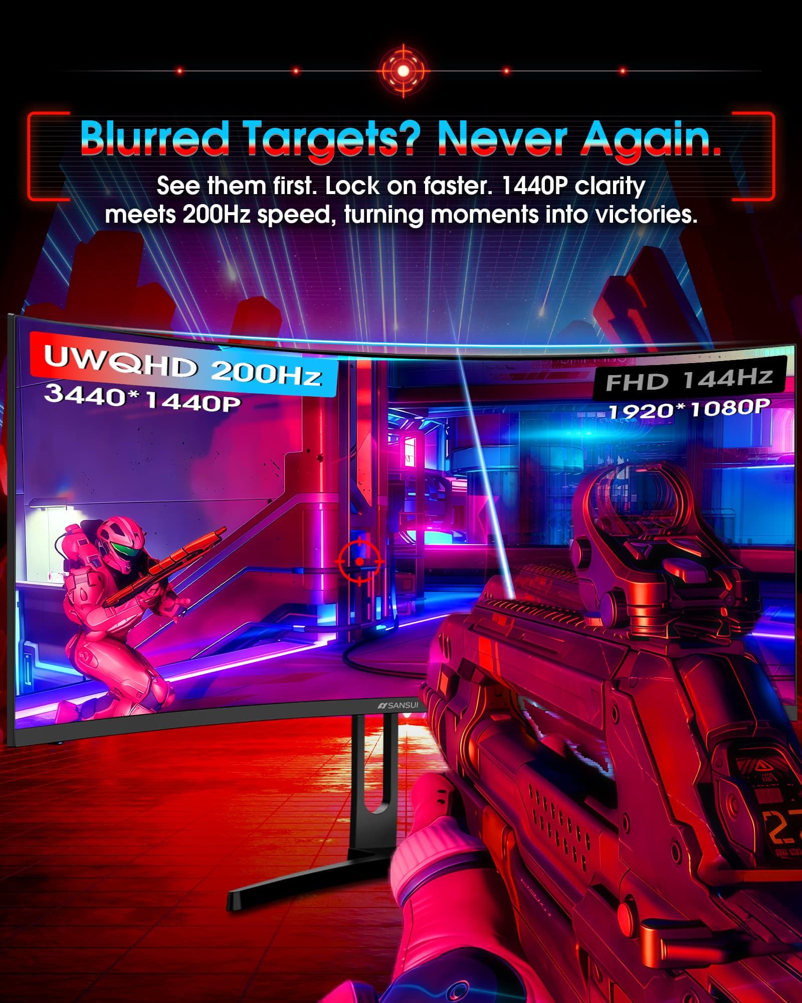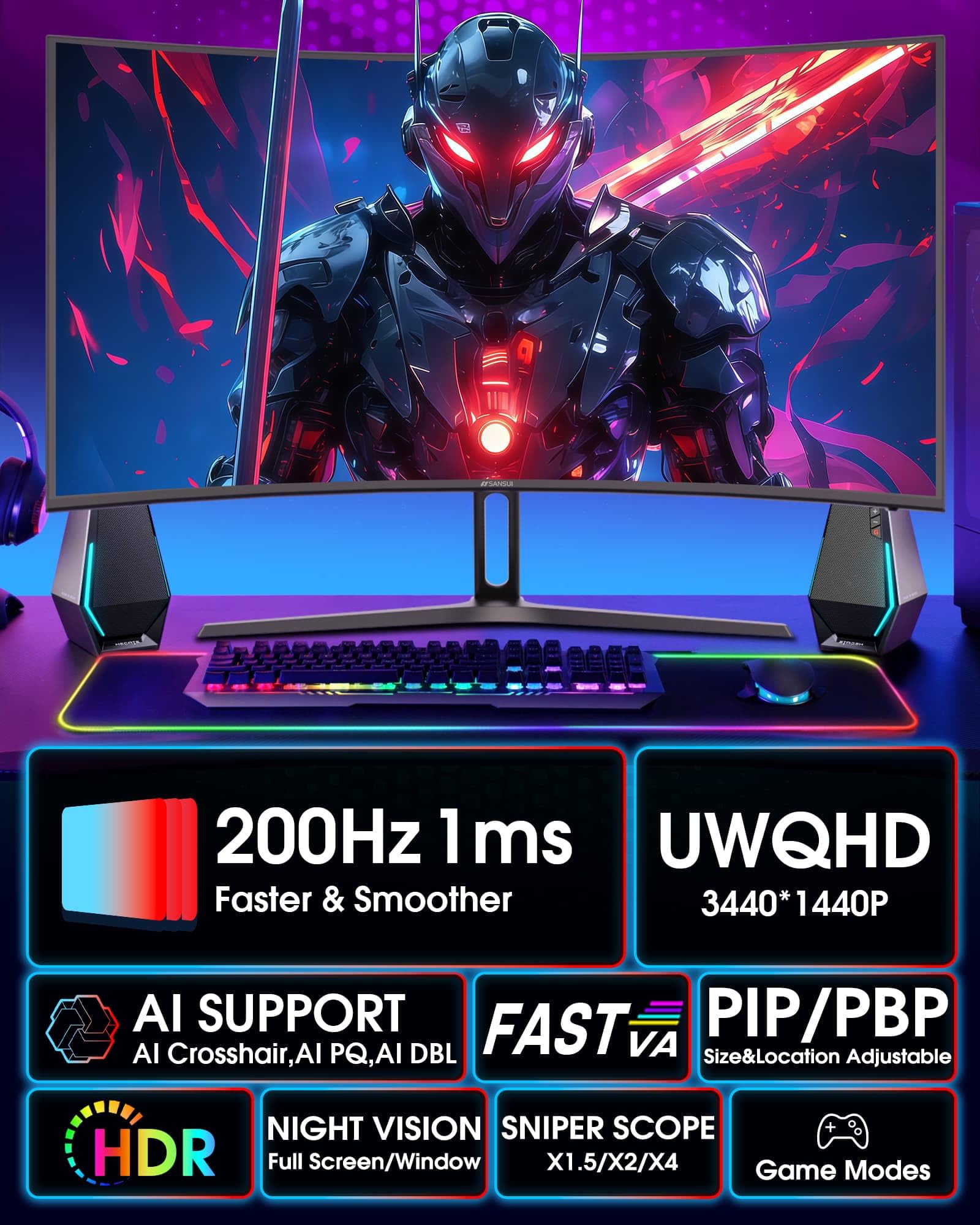 34-inch Curved 1500R UWQHD(3440 x 1440P) @ 200Hz Fast VA Ultrawide 21:9 Gaming Monitor with AI Tech for Gaming Assistance.