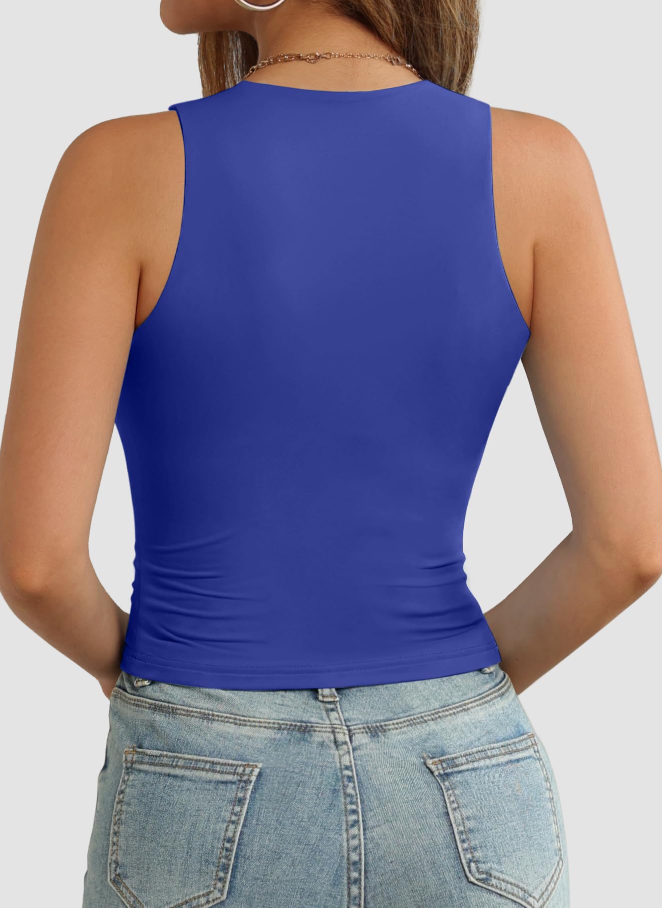 Design: This racer back tank tops with high neck and double line design,casual and fashion for women and cute for teen girls,tight slim fit,basic type,solid,racer back,cropped length