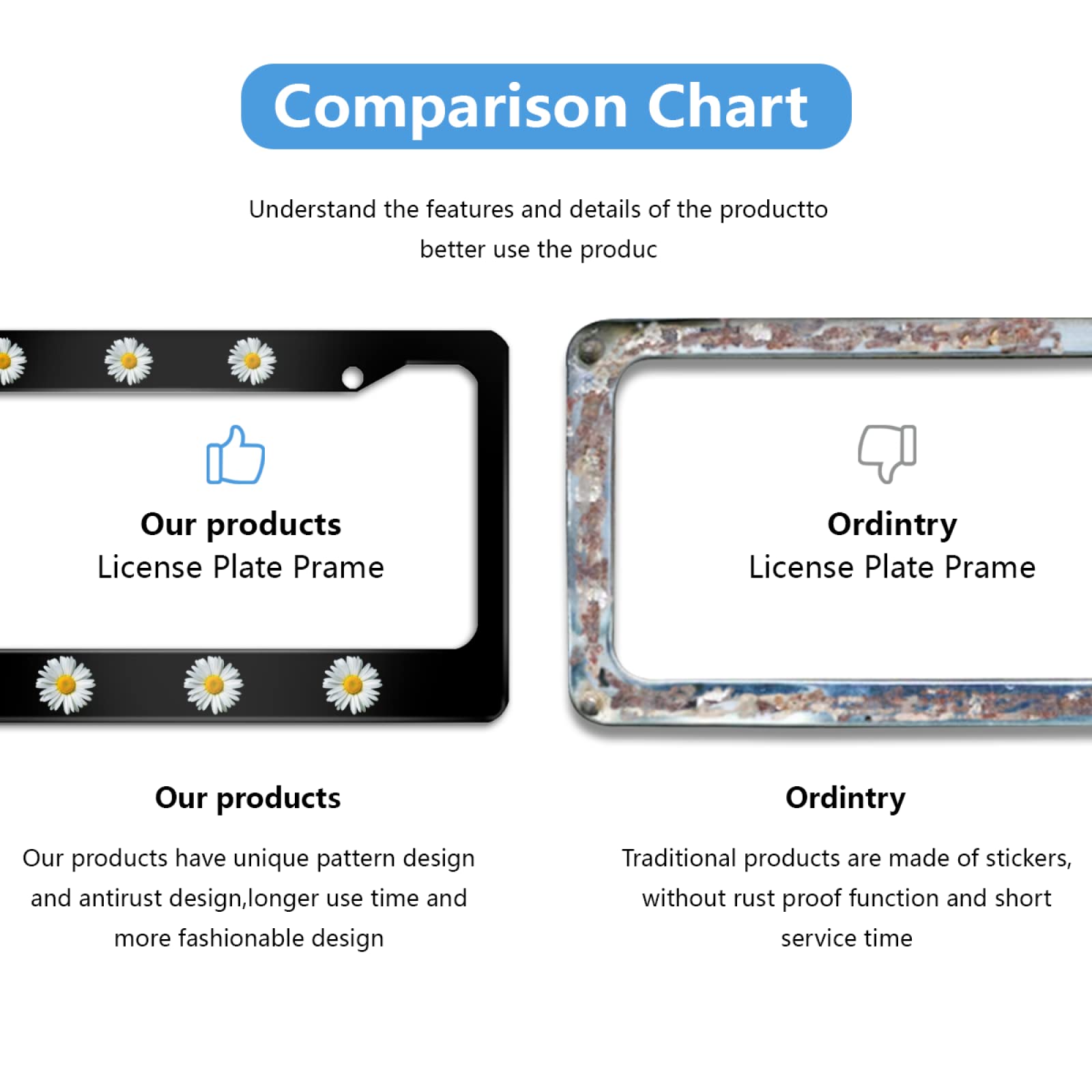 【Standard License Plate Size】:Our license plate frame size is 12.2 x 6.3 inches. This license plate frame will fit most of the standard license plates in the United States and Canada, and perfectly match your car license plate accessories.