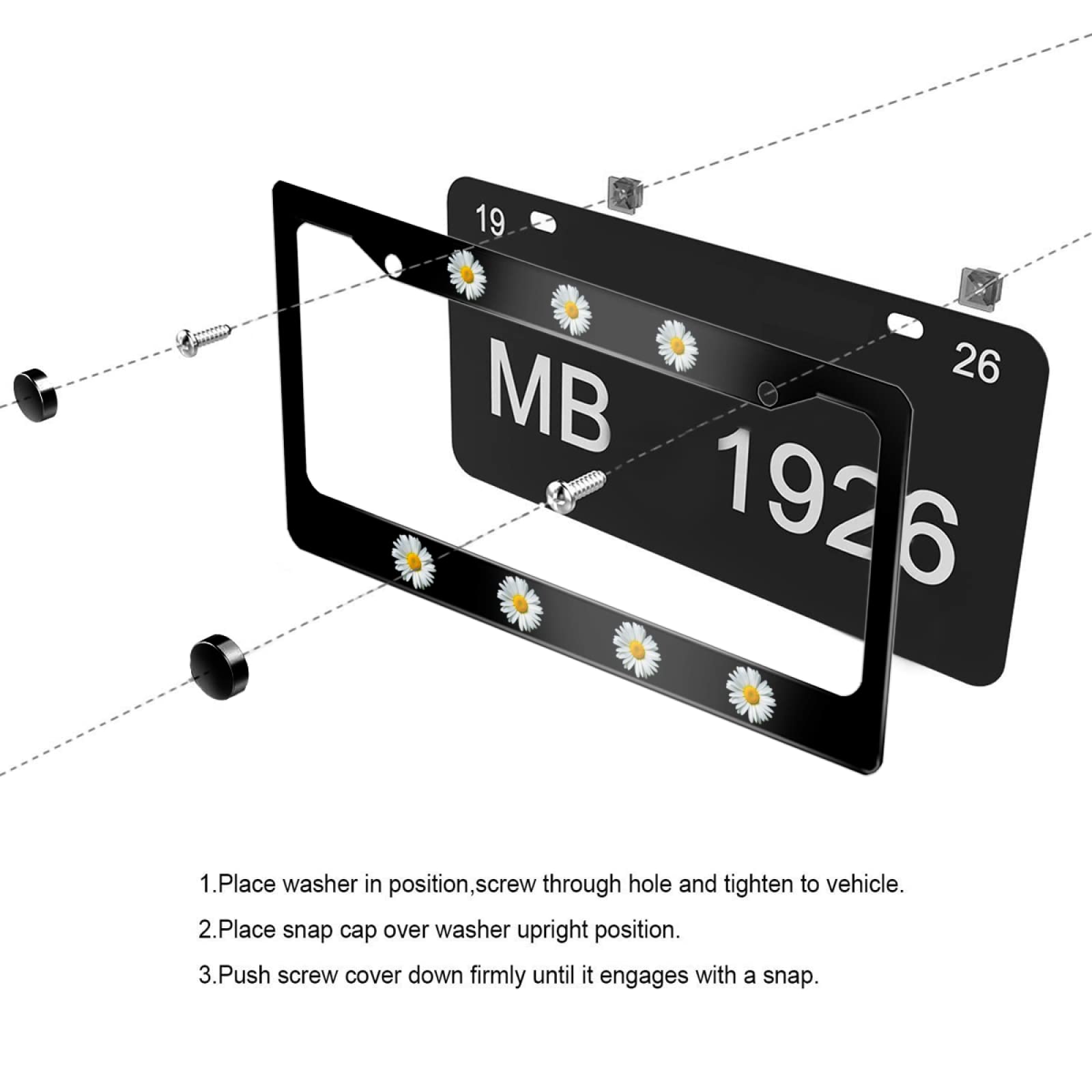 【Product includes accessories】: (2 screws, 2 screw covers, 2 washers) with slots on the top, use the included accessories to install the license plate frame, simple operation, fast installation, no special tools required.