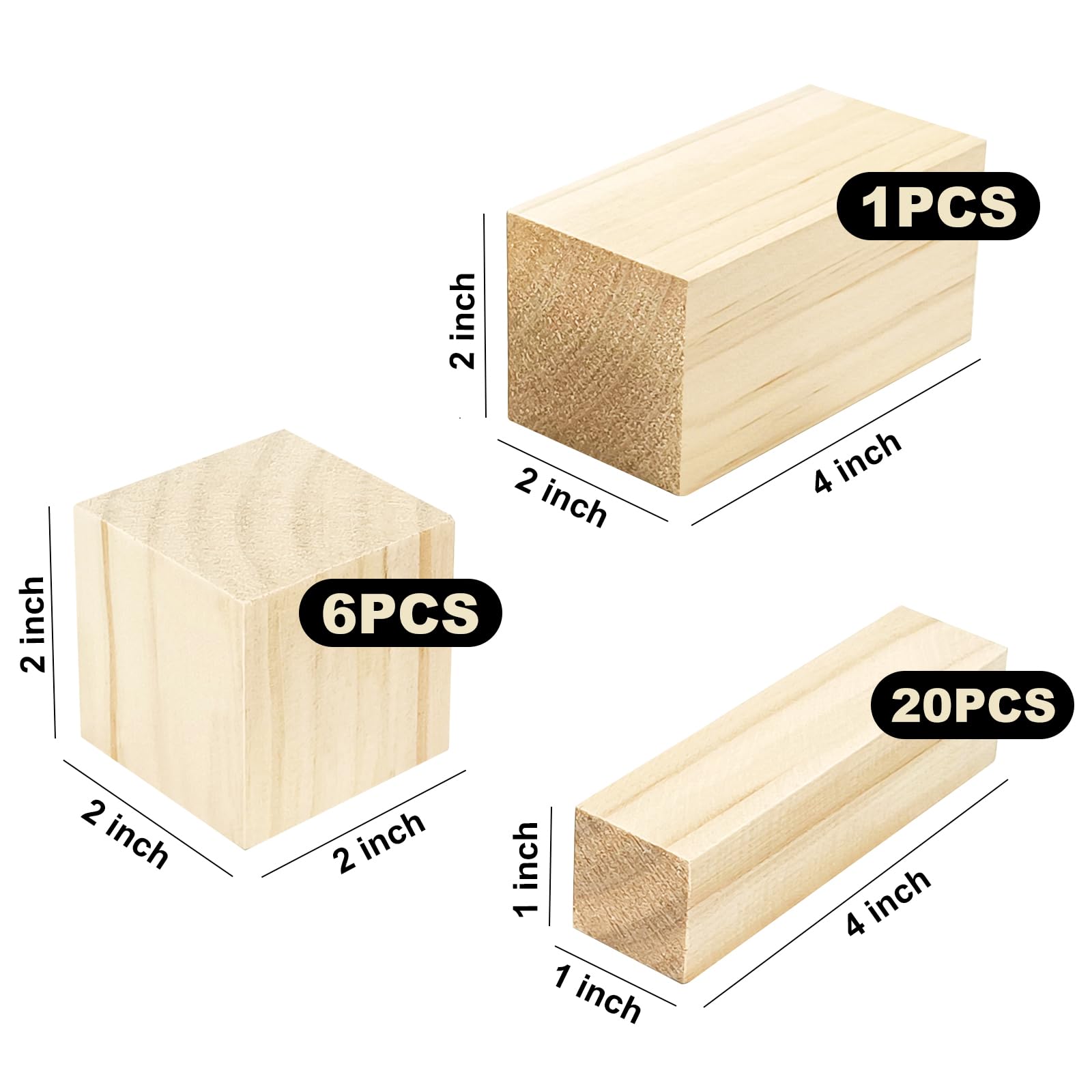 The packaging Includes: You will receive 3 different sizes of Carving Blocks, including 20pcs of rectangle blocks (4 ''x1' 'x1' '), 6pcs of cube blocks (2''x2 '' x2 ''), and 1pc of rectangle blocks (4 ''x2' 'x2' '), with sufficient quantities to meet your various carving needs