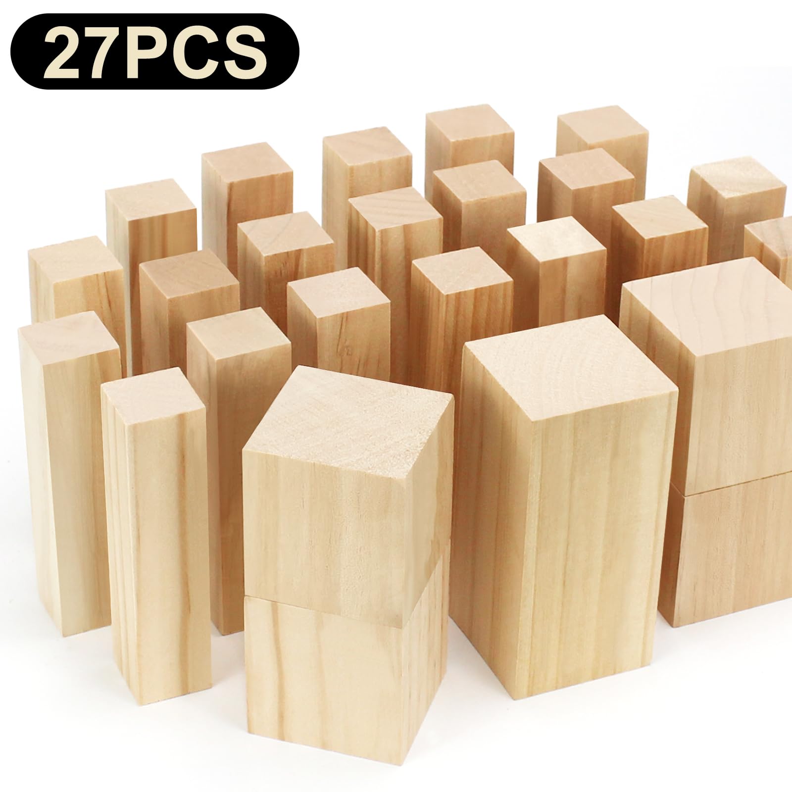 27Pcs Wood Carving Blocks, Wood Blocks for Crafts with 3 Different Sizes,Unfinished Wood Blocks Set ,Whittling Wood,Soft Wood Carving Blocks for Wood Carving Wood Crafts Features Cultivate patience and focus: The process of making handicrafts not only enhances personal artistic aesthetics and hands-on abilities, but also exercises focus and cultivates patience Multiple sizes: Our package includes various sizes and quantities, and you can use tools to carve it into crafts of various sizes and shapes. Whether you are a beginner or a seasoned sculptor, you can find suitable creative materials in this set of wooden blocks Target audience: Whether you are a handicraft enthusiast or a woodworking instructor, this set of carved wooden blocks is an indispensable creative partner for you specification Size:4''x1''x1'',2''x2''x2'',4''x2''x2'' Material: wood,wooden Package Includes 20pcs rectangle blocks (4''x1''x1''), 6pcs cube blocks (2''x2''x2''), and 1pc rectangle block (4''x2''x2'') NOTE Due to the display resolution, light, shooting Angle and other factors, it may lead to a certain color difference between the product picture and the real thing in the display Due to manual measurement, the actual product size may be slightly different from the description on the page, please understand