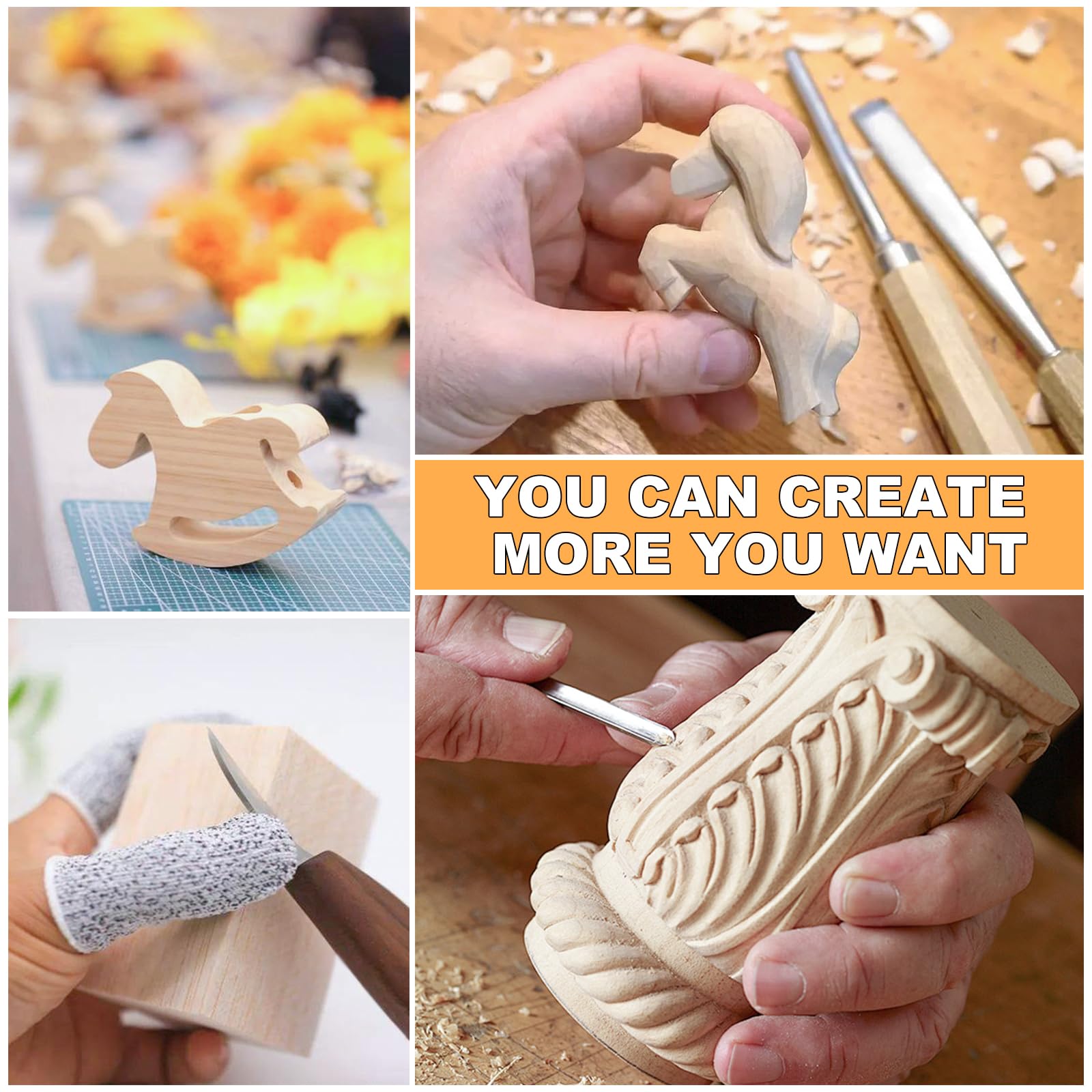 DIY Creation: This set of carved wooden blocks provides you with a wealth of creative materials, allowing you to carve unique crafts according to your preferences