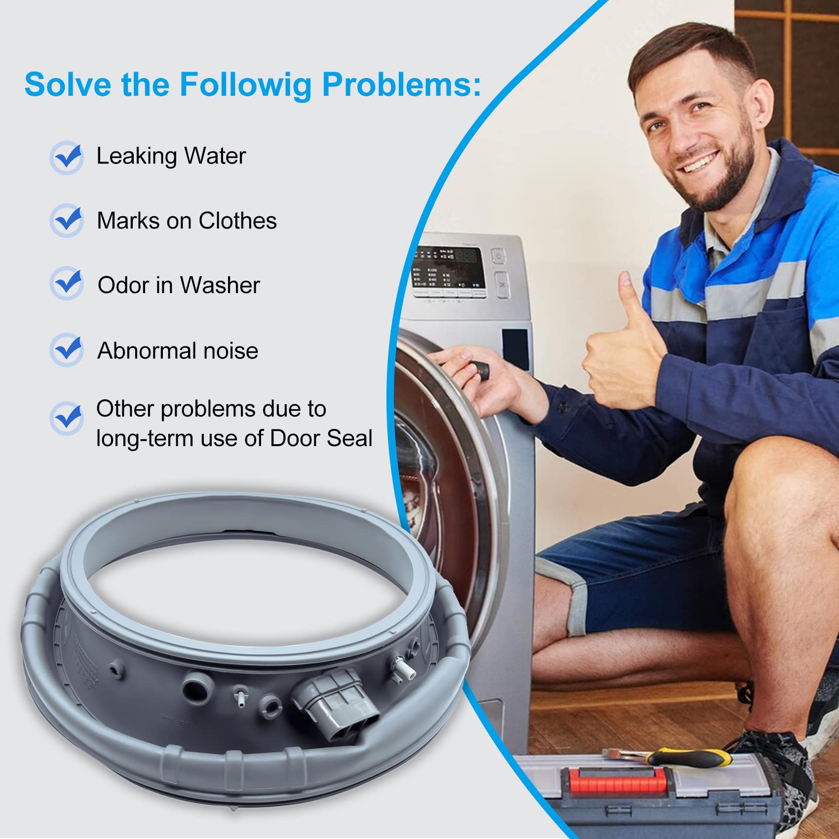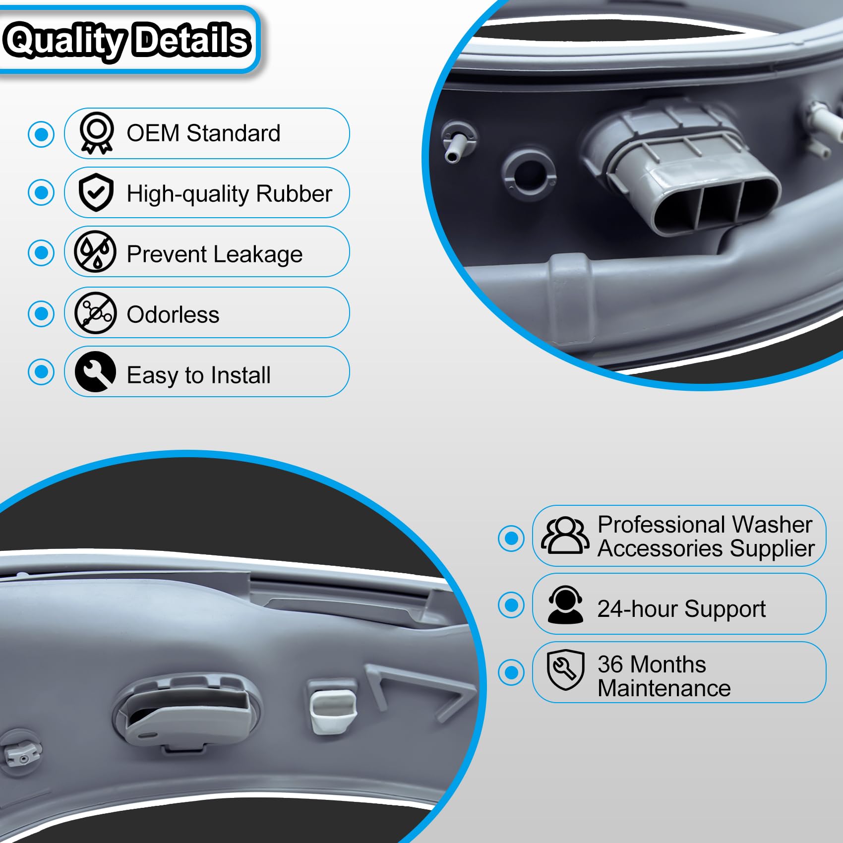【UPGRADED QUALITY】This washing machine door gasket can provide excellent performance and long service life. High-quality and durable environmentally friendly rubber material: guarantees high elasticity, high waterproofness, and no odor. Better material selection and surface treatment process than most similar products. Replace the old washer door diaphragm, get rid of laundry odors and leaks troubles!