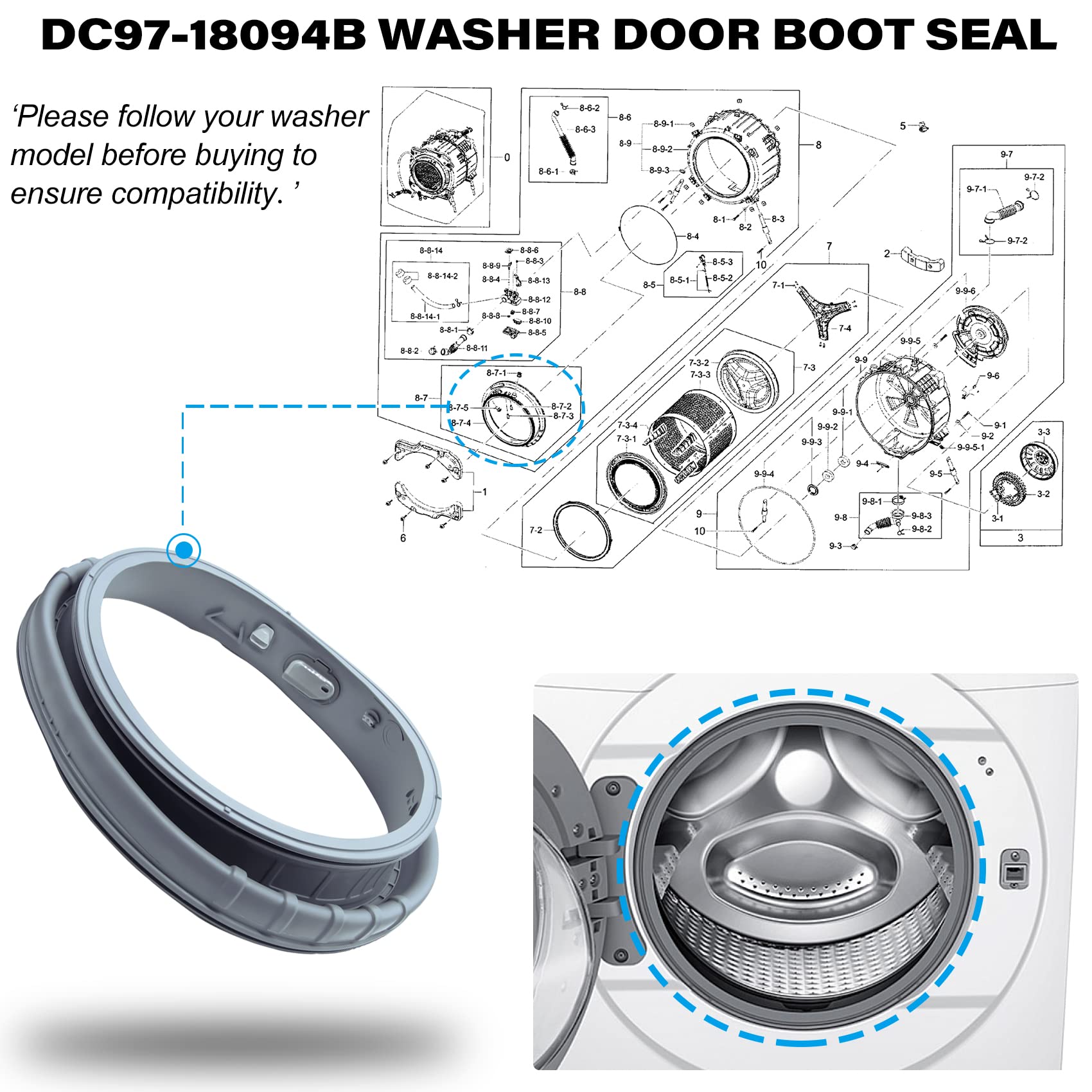 【EASY TO INSTALL】Our washer door seal is the same size as the original parts (DC97-18094B), you can directly replace it yourself and finish it in 20 minutes! It saves you the time of changing back and forth, and also helps you save money. (Tips: The detailed replacement steps are in the description.)