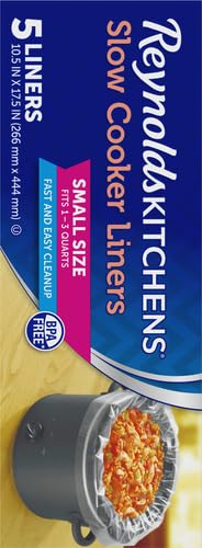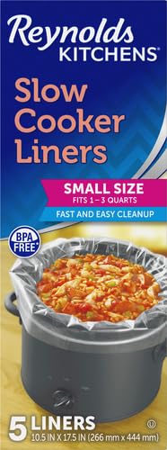 Make memorable meals with Reynolds Kitchens Slow Cooker Liners, and save time on cleanup. Grab these slow cooker bags for slow cooking without dealing with stubborn, stuck-on messes. Each slow cooker bag measures 10.5 x 17.5 inches to fit 1- to 3-quart round slow cookers, and is made with a BPA-free heat resistant (up to 400 degrees Fahrenheit) nylon-blend construction. Spend more time with your loved ones and less time in the kitchen with these FDA-compliant food-safe Reynolds Kitchens Slow Cooker Liners.