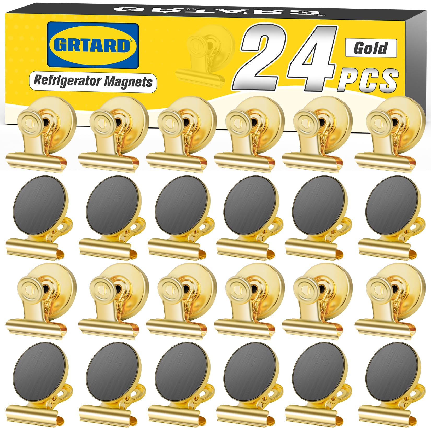 💝Packaging and Guarantee: You will receive a value pack of 24 gold magnetic clips. Grtard is a professional brand trusted for high-quality magnetic products. For the convenience and efficiency of your daily life, we designed this magnetic clip to solve various organizing needs at home, school, and office.