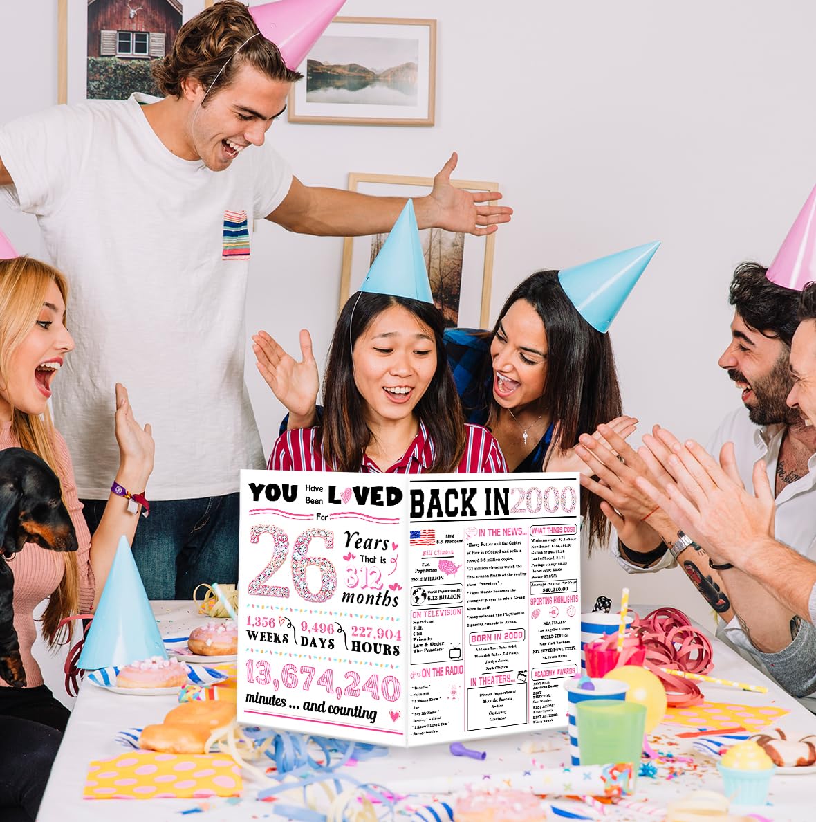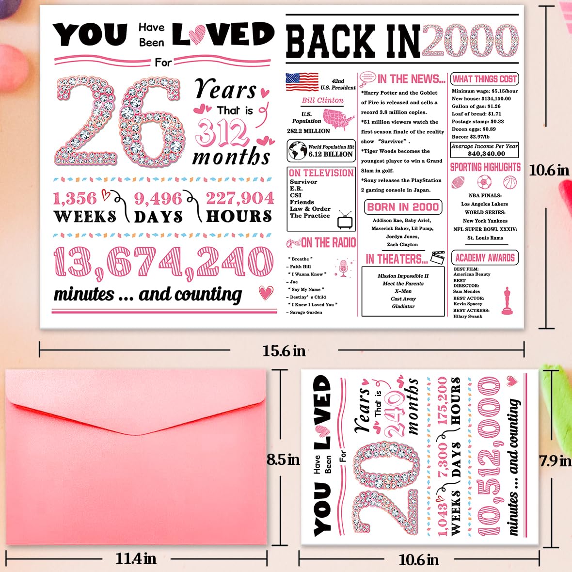 26th Birthday Decorations The set includes a high-quality pink envelope, 2 sealing stickers, and a protective bag—perfect for gifting. The card itself (Size: 10.6 x 7.9 inch after folding) is made from superior 350gsm thick paper, giving it a standout, decorative feel for the celebration.