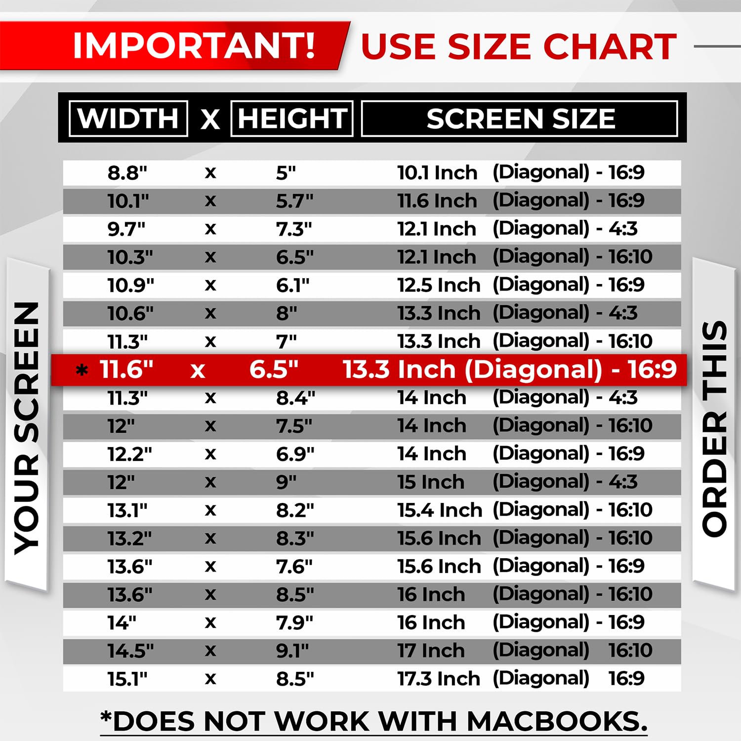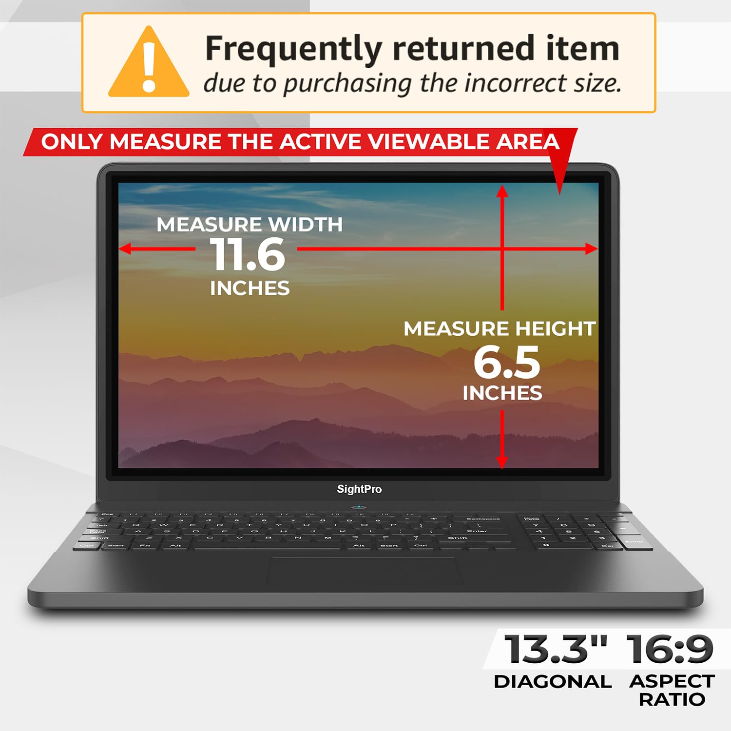 【Filter Dimensions】: Width: 11 9/16" (294 mm), Height: 6 1/2" (166 mm), Diagonal: 13.3" (337.82 mm) - SightPro Blackout Privacy Filter is engineered to be compatible with Lenovo, HP, Dell, Acer, Asus, Samsung, and other laptop brands. Please verify your screen's width and height measurements before ordering. It's not recommended to make your selection based solely on your screen's diagonal size. [Not optimized for touchscreens.]