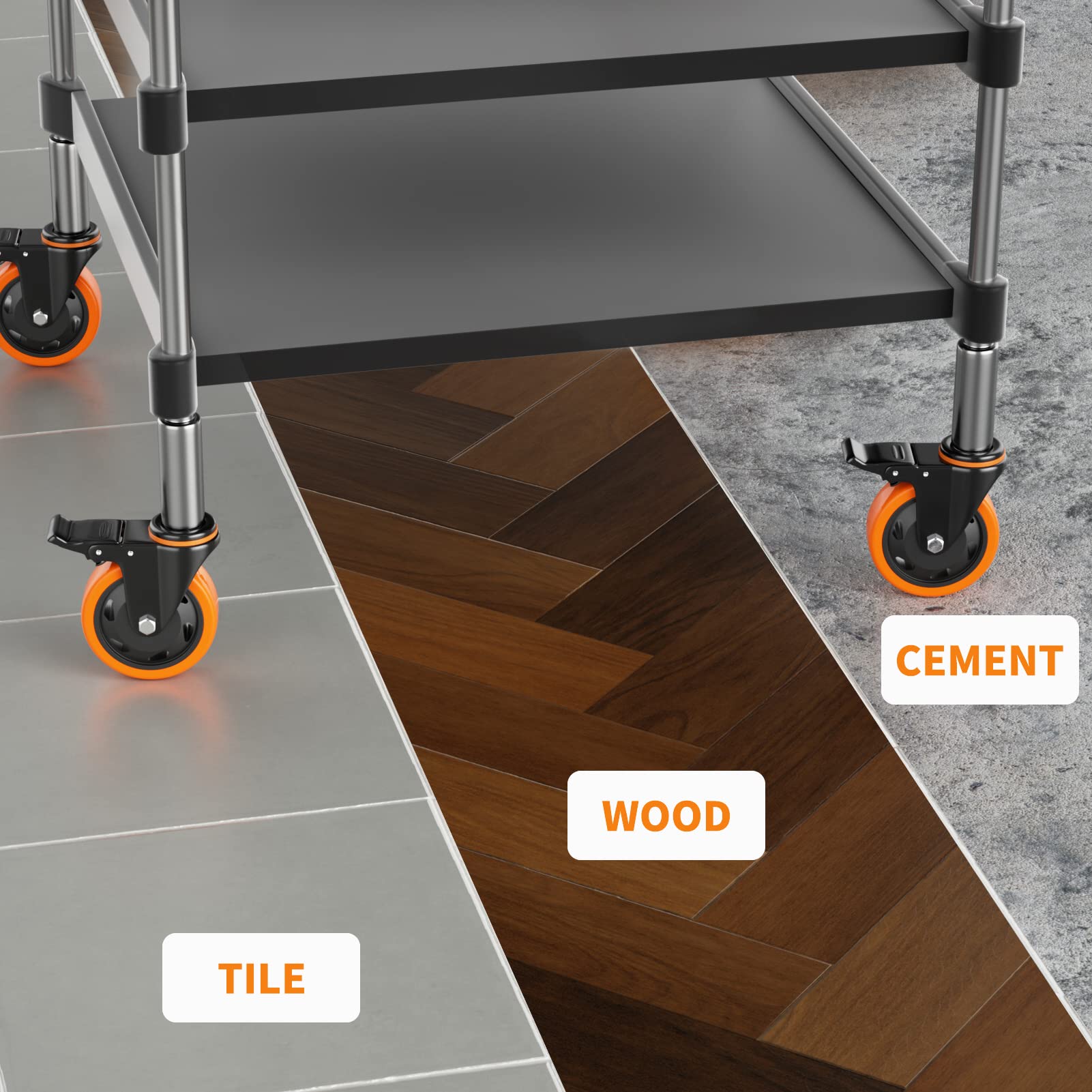 QUIET MOVEMENT ON HARD FLOORS: The wheels for cart are adopted non-marking polyurethane as its main material, won't harm your wooden floor, no noise, the surface of the rubber stem casters is soft and better protects the ground. The casters set of 4 have a better performance of durability, shock absorption and quiet rolling operation.