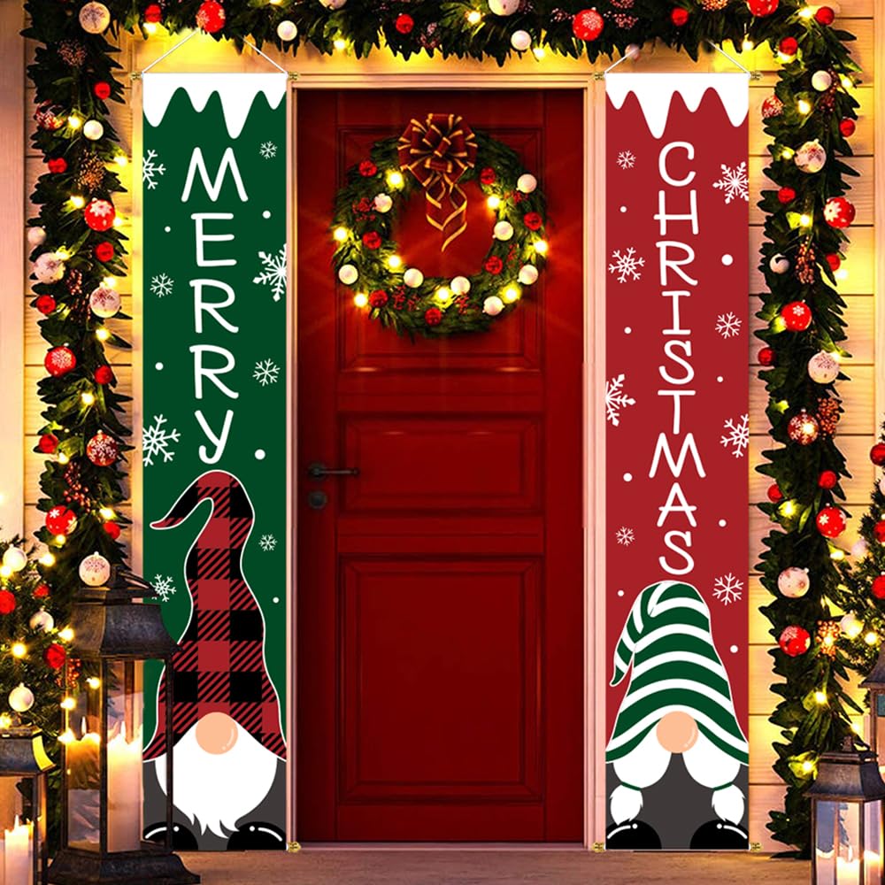 PACKAGE INCLUDES: 2 extra large Christmas front porch door banner. Both in the size of 71" x 13" (L x W). The pattern and letters are large enough to be seen from far away. Good size as Christmas decorations outside yard.