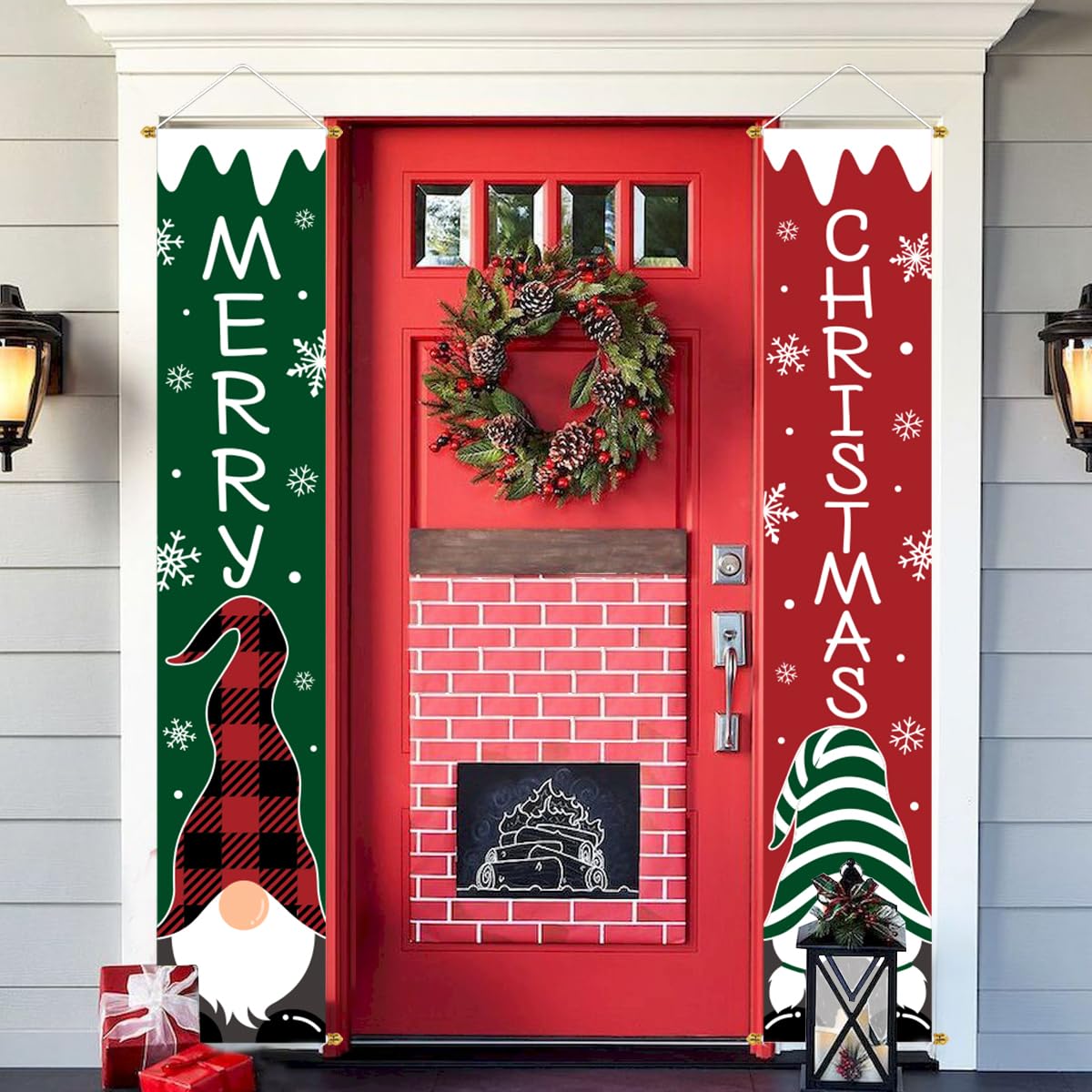 NEW CHRISTMAS DESIGN: This cute red and green Christmas porch sign set is designed with Gnome, snowflakes and "MERRY CHRISTMAS", which can boost Christmas atmosphere a lot.