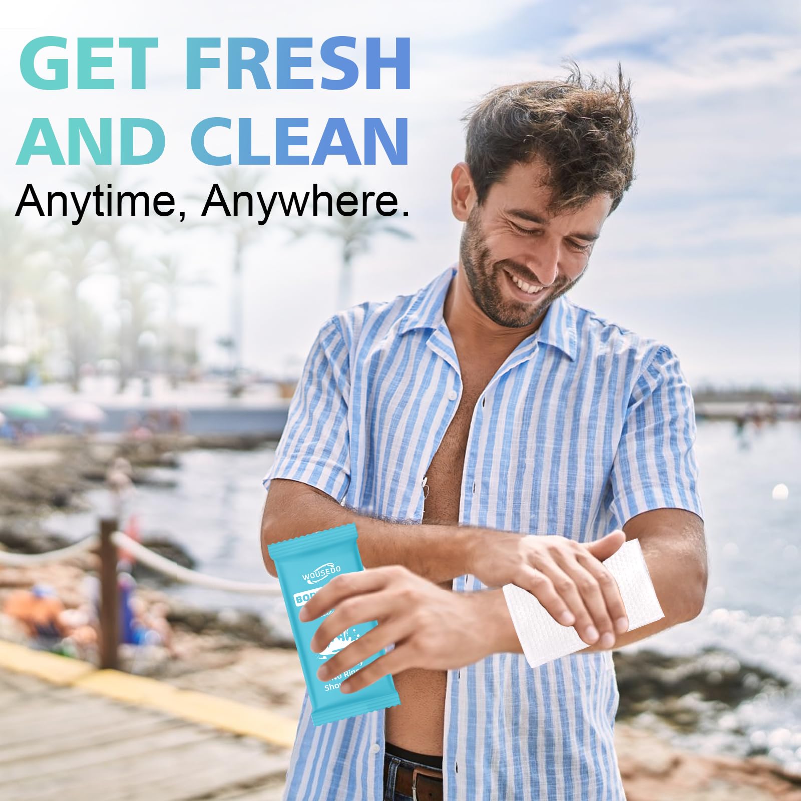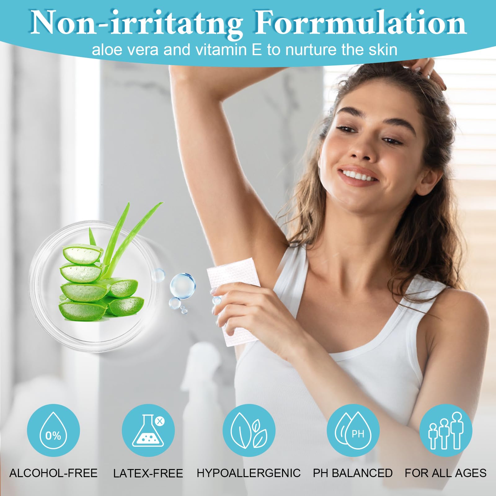 Mild Formula: WOUSEDO body wipes are made of high-quality non-woven fabric and RO pure water,PH balanced and rich in aloe vera leaf juice and vitamin E, they do not contain alcohol or any chemicals, making them more skin friendly, effectively cleansing the body, and not causing skin irritation.