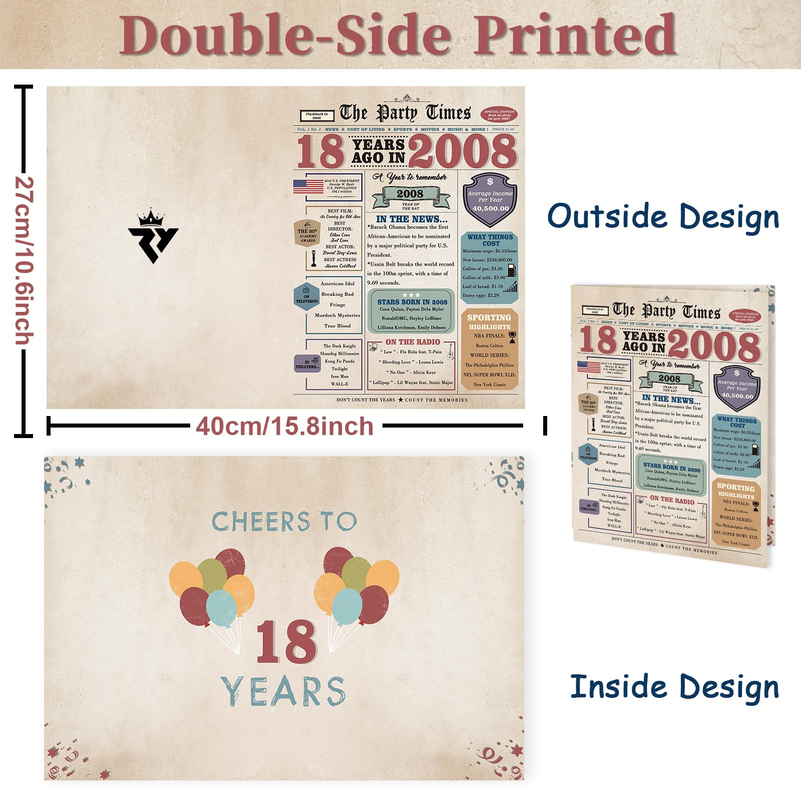 【Product Features】The 18 bday card is printed on high quality, smooth, heavy cardboard