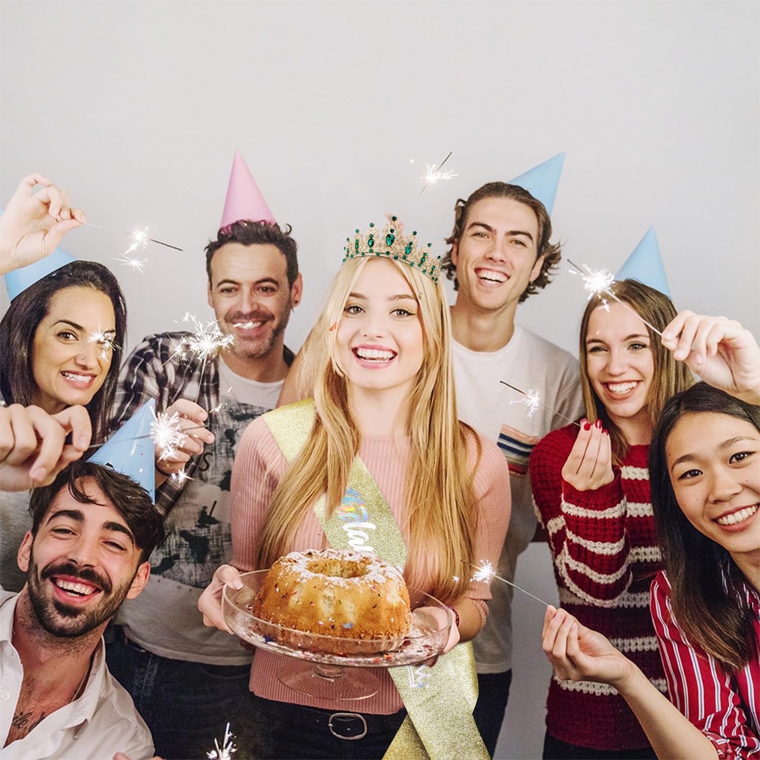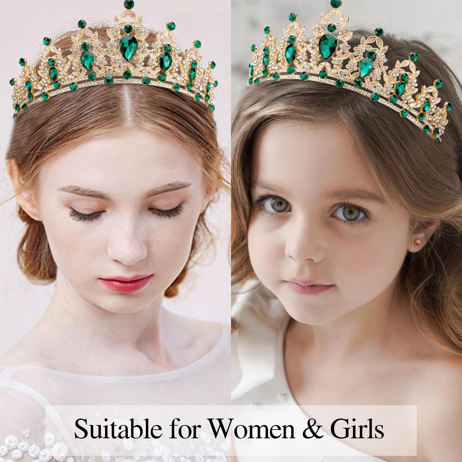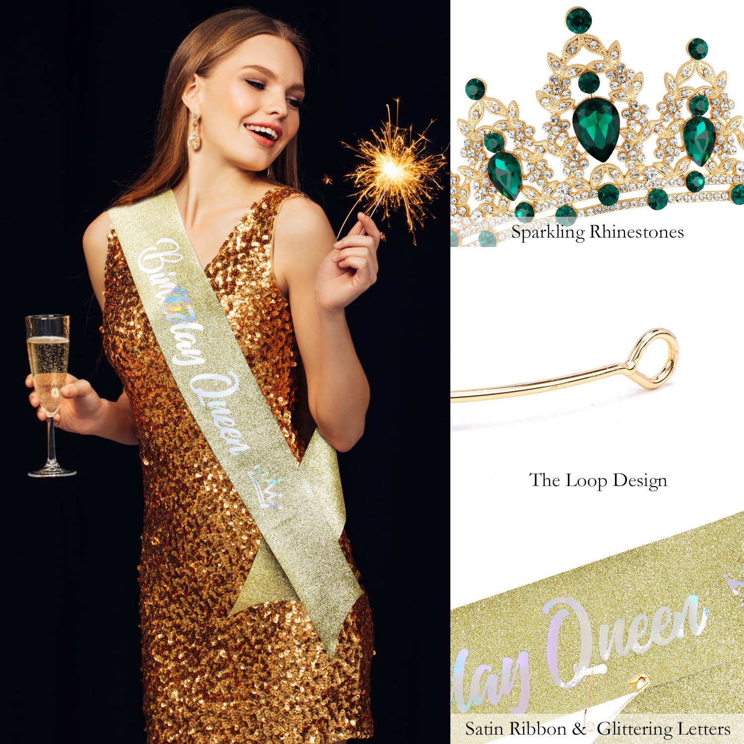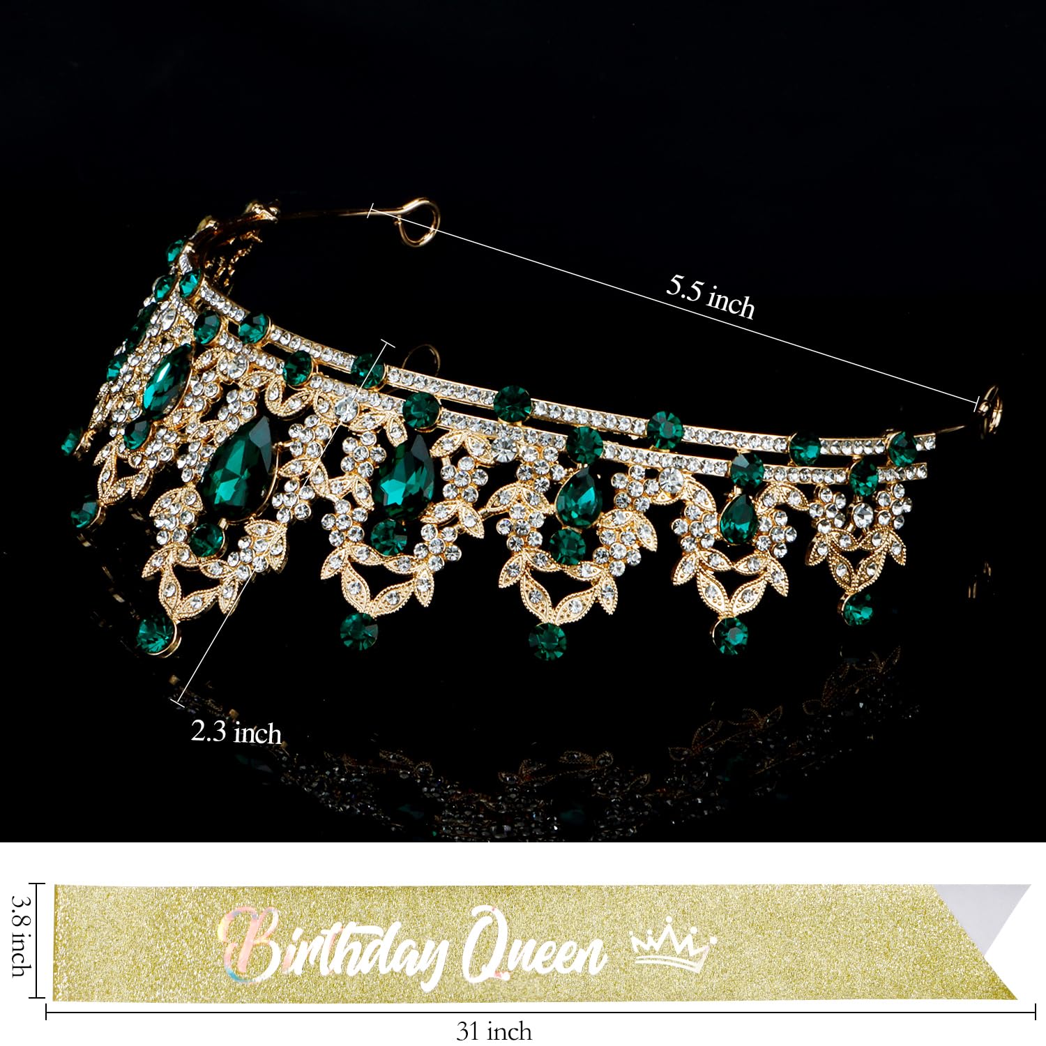 【Birthday Queen Sash and Crown】The crystal green tiara is made of a sturdy metal, super solid and sturdy and can be worn for years. The little rhinestones on the crown shine brilliantly and the glitter & foil “Birthday Queen” sash is shimmering nicely, and come with a safety pin to fasten the ends for the best fit.