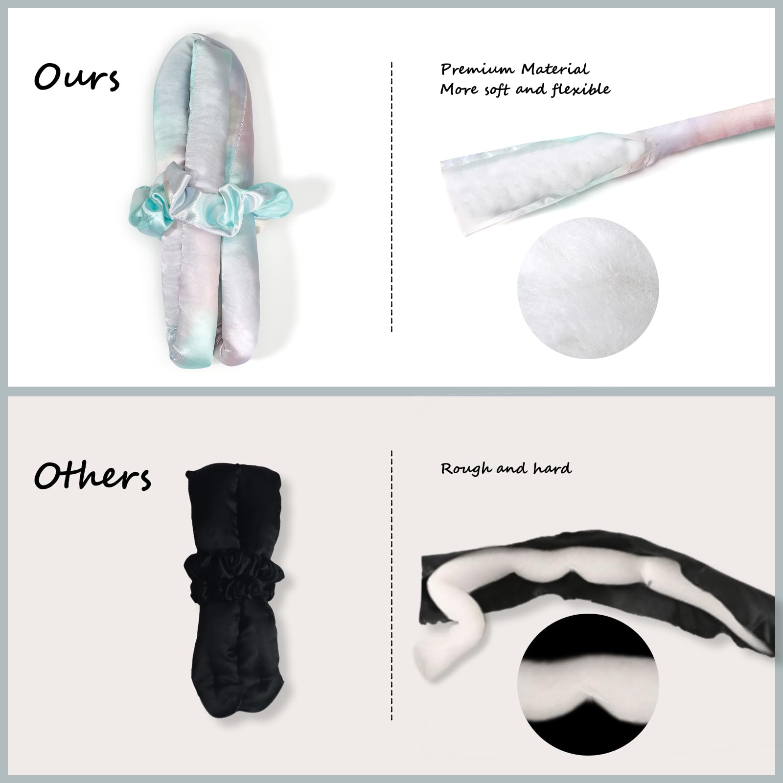 【Upgrade Satin Heatless Curler Band】 Upgraded curting headband is made of satin material outside and soft cotton fiber material inside; which is softer, and more comfortable to sleep in than the other versions. Our no-heat curler helps you hold the hair finalized and healthy easily.