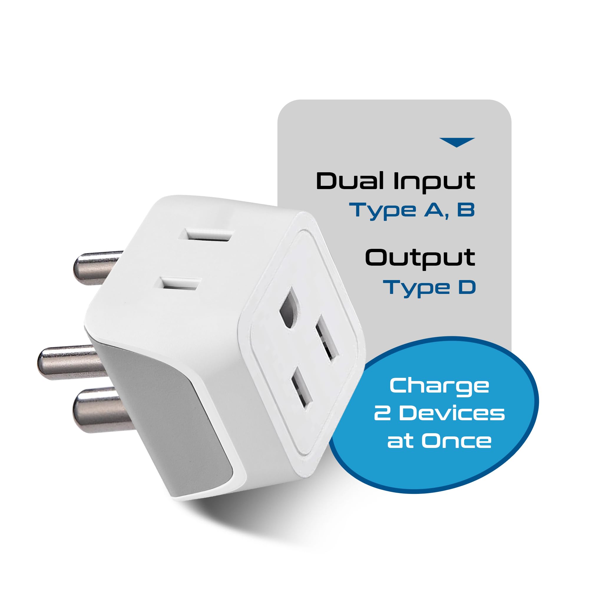 2 IN 1 INPUT INDIA TRAVEL ADAPTER: Accepts the standard N American 2 and/or 3 prong flat pin plug (including polarized) - No Messy Universal Outlet