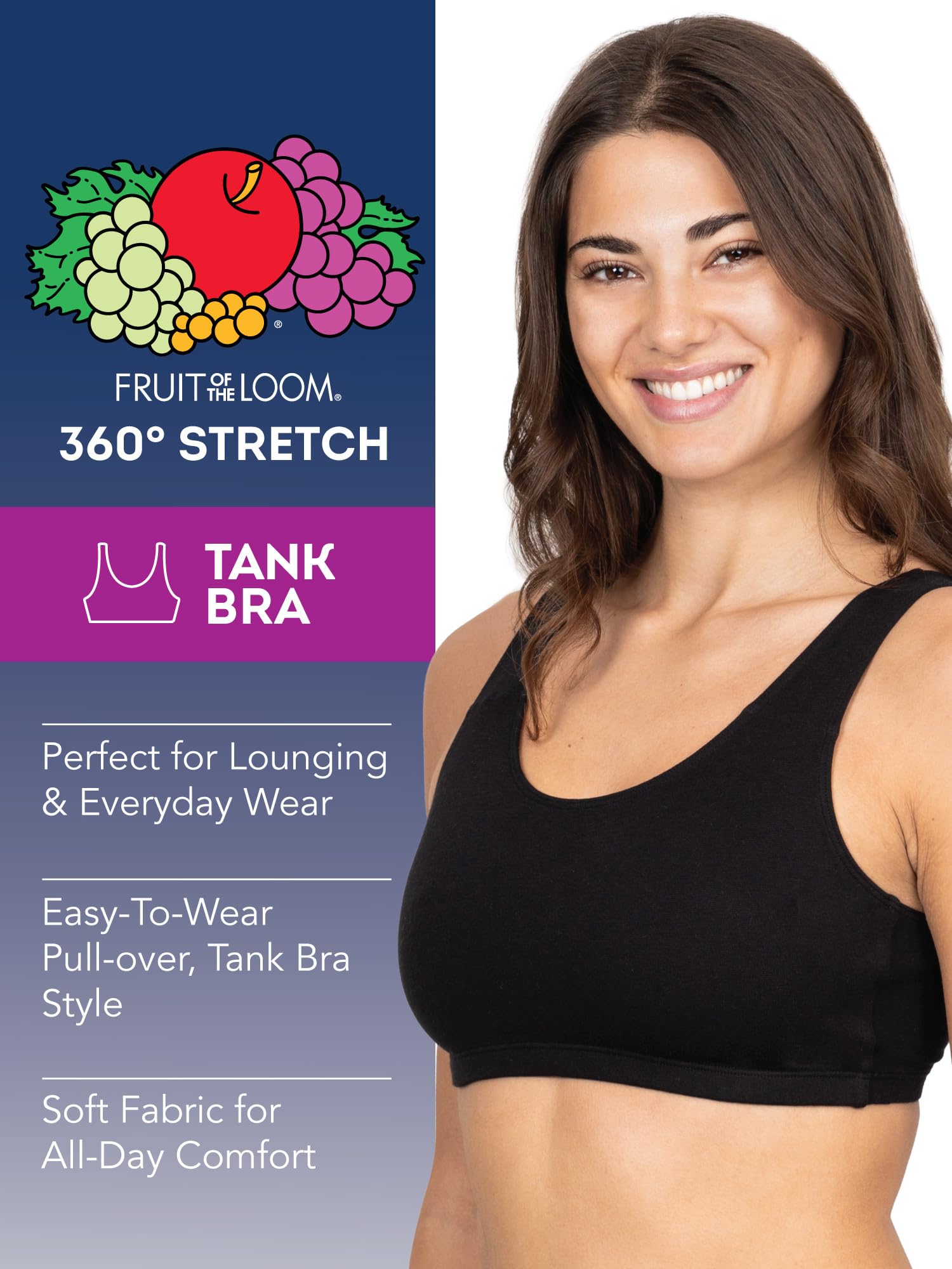 Lightweight and Comfortable: The Fruit of the Loom Women's Tank Style Cotton Sports Bras cotton pullover sports bras perfect for leisure or for the gym.