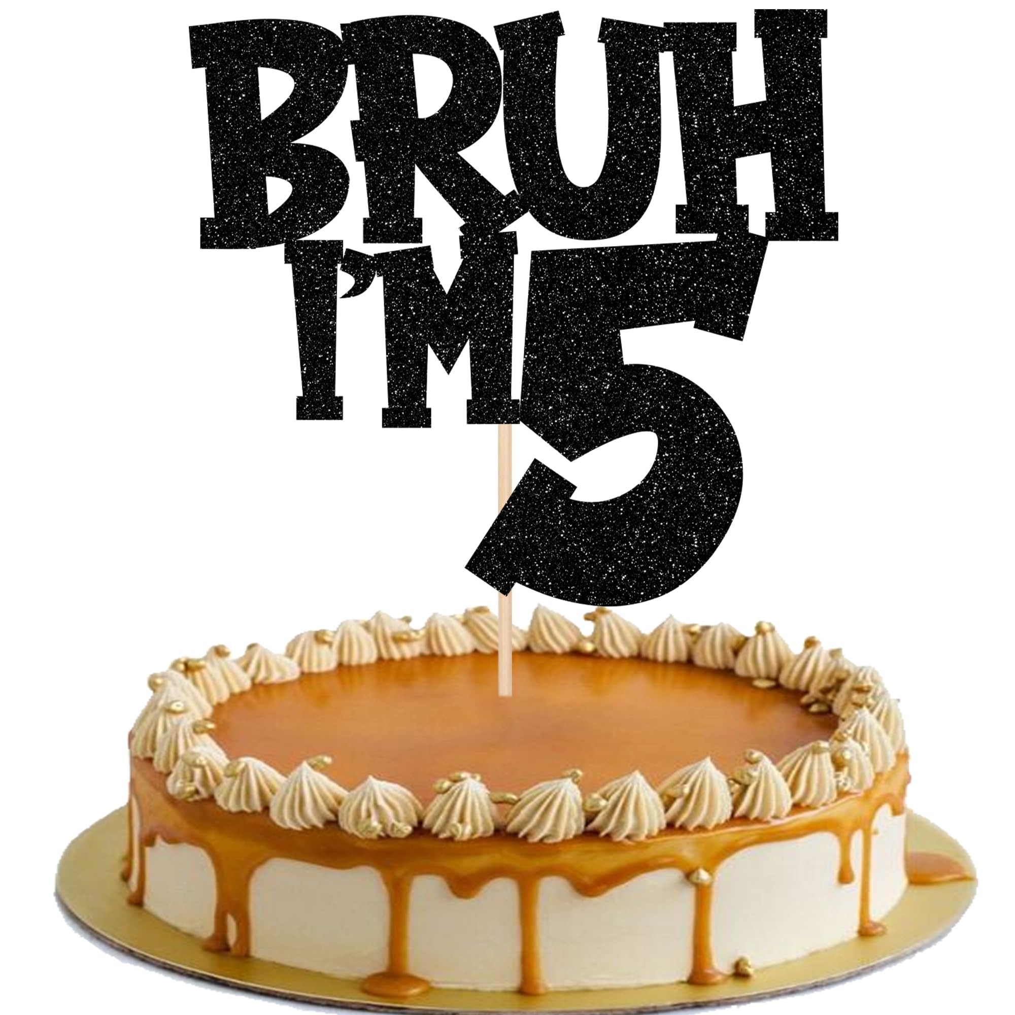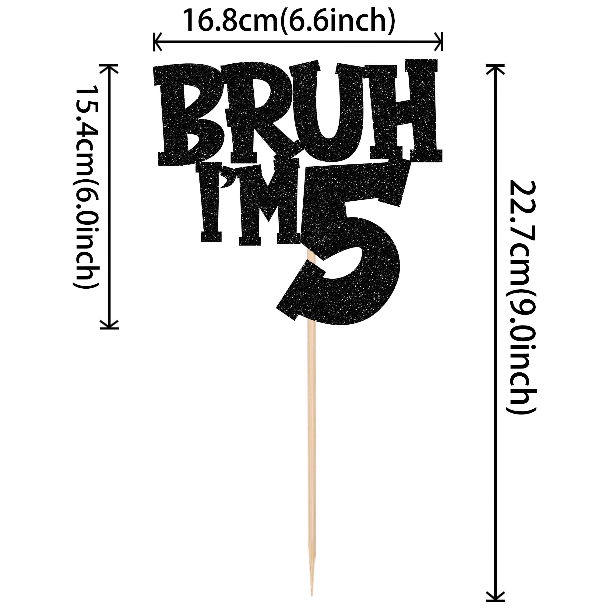 1 PCS Bruh I'm 5 Cake Topper Black Glitter Happy 5th Birthday Cake Topper It's My 5th Birthday Cake Pick Cheers to 5 Years Cake Topper Hello 5 Fabulous Bro I'm 5 Cake Decoration for Happy 5th Birthday Party Cake Decorations Supplies Perfect for happy 5th birthday theme party, bro i'm 5 theme party, it's my 5th birthday theme party, cheers to 5 years theme party, hello 5 fabulous theme party, funny 5th birthday theme party cake decorations supplies. Pack of 1 pcs,1 pcs / card +opp bag The size is W 6.6 inch * H 9 inch / W 16.8 cm * H 22.7 cm ( with stick ) Made of high quality glitter paper card stock, thick and sturdy. The bruh i'm 5 cake topper is single glitter, the back is white, and they are intended for decoration only, please do not put them in oven or microwave. If the item you received has any defects, please contact us immediately, we will deal with it within 24 hours until you are satisfied.