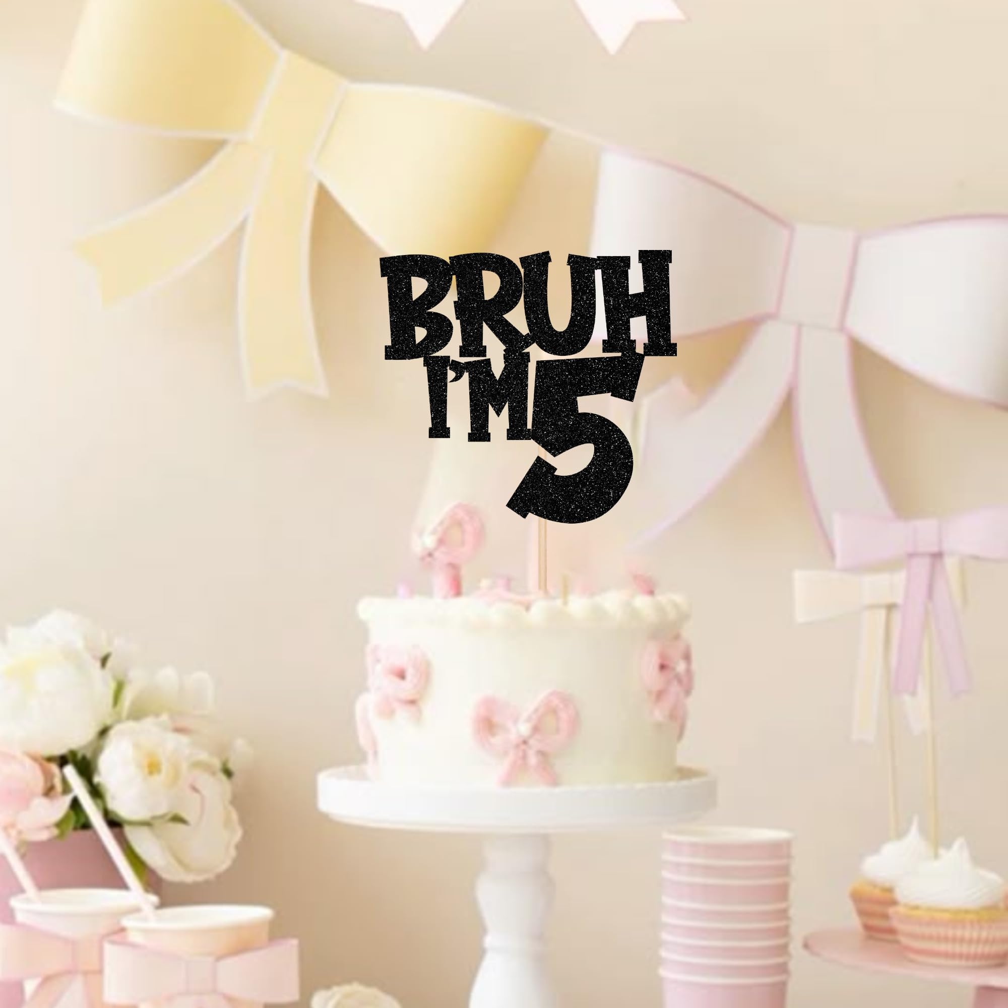 Wide Usages ! The bruh i'm 5 cake topper is perfect for happy 5th birthday theme party, bro i'm 5 theme party, it's my 5th birthday theme party, cheers to 5 years theme party, hello 5 fabulous theme party, funny 5th birthday theme party cake decorations, they can make your cake more attractive and bring the fun to your party.You can also apply them for ice cream, fruits, cookies and other desserts.