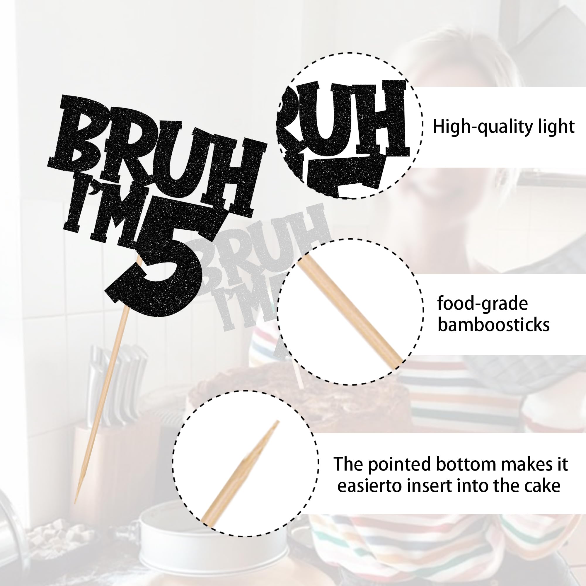 No Assembled Required ! The bruh i'm 5 cake topper is assembled in advance,so you don't need to DIY it by yourself,which can save you time and effort during the process of party preparation; You can insert them into your cake and adjust the suitable height to show better effects.