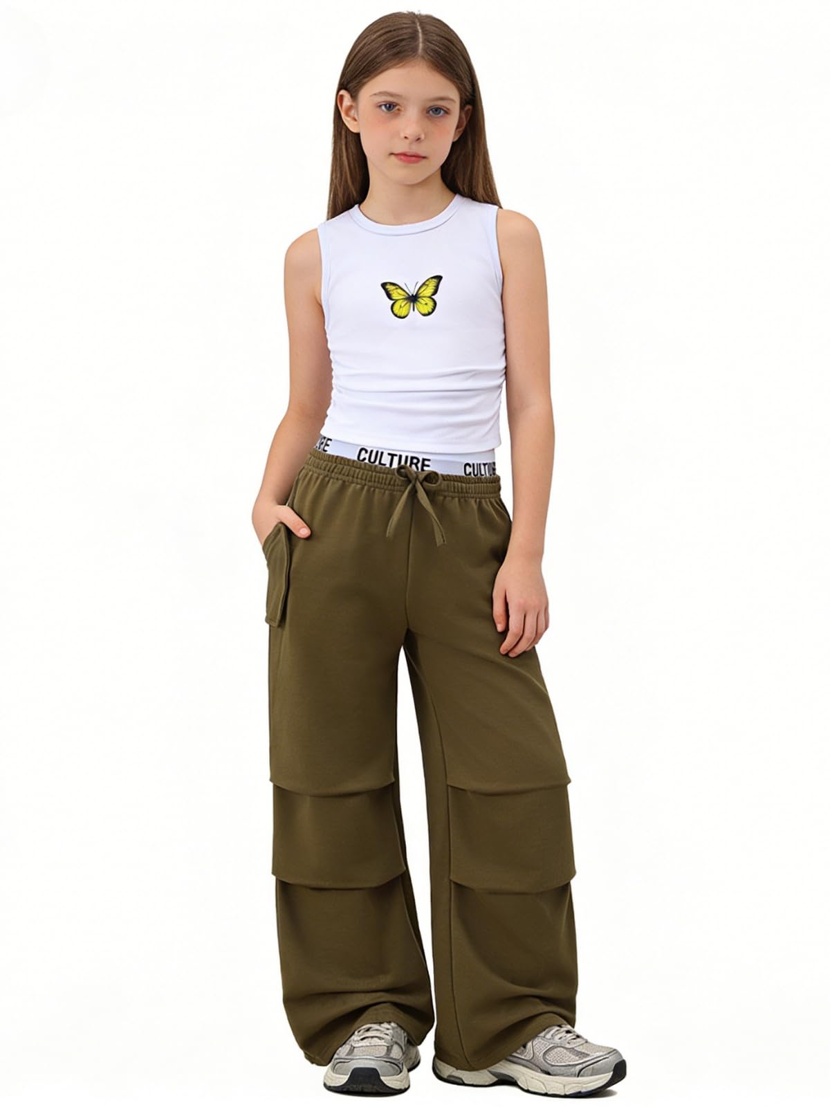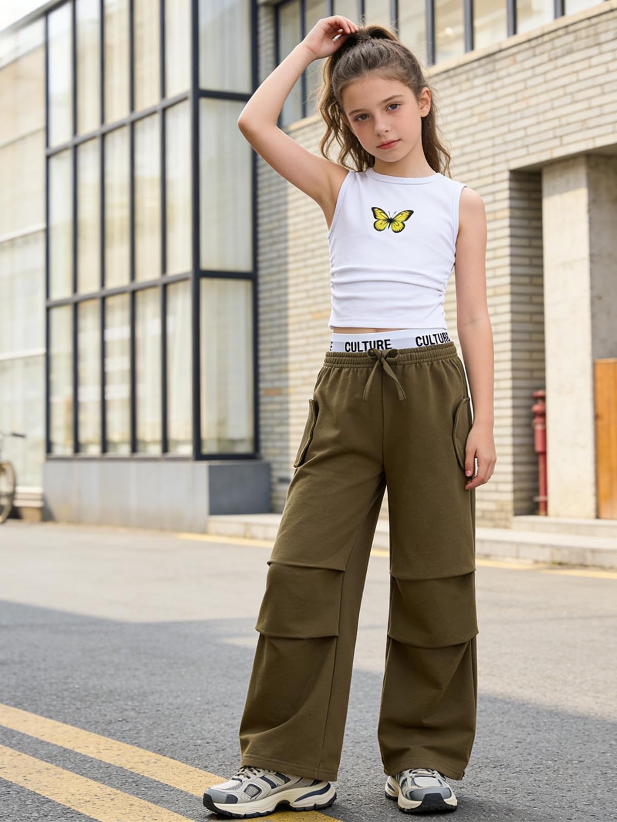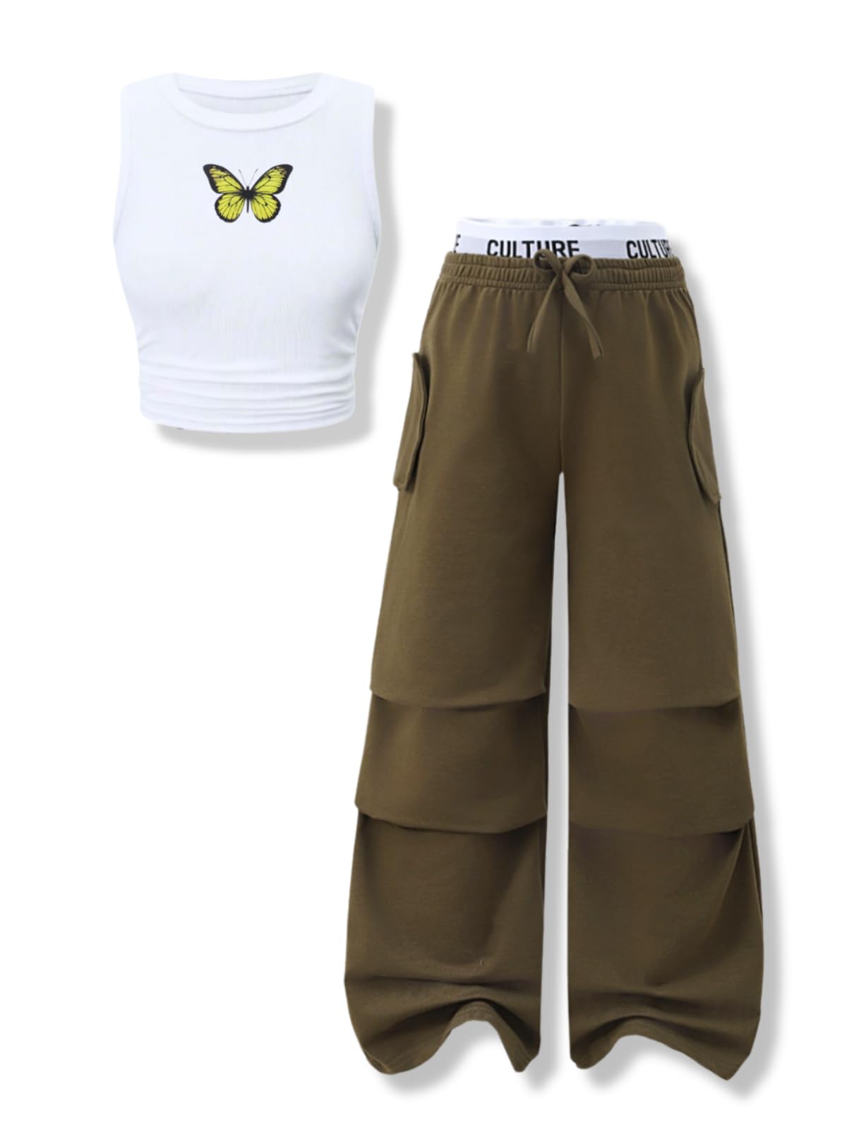 Design Features: This girls 2 piece outfits pairs a butterfly-printed sleeveless tank with wide-leg pants, featuring a drawstring waist for different body shapes. Simple yet sweet, it helps outfits for girls create a fashionable vibe easily