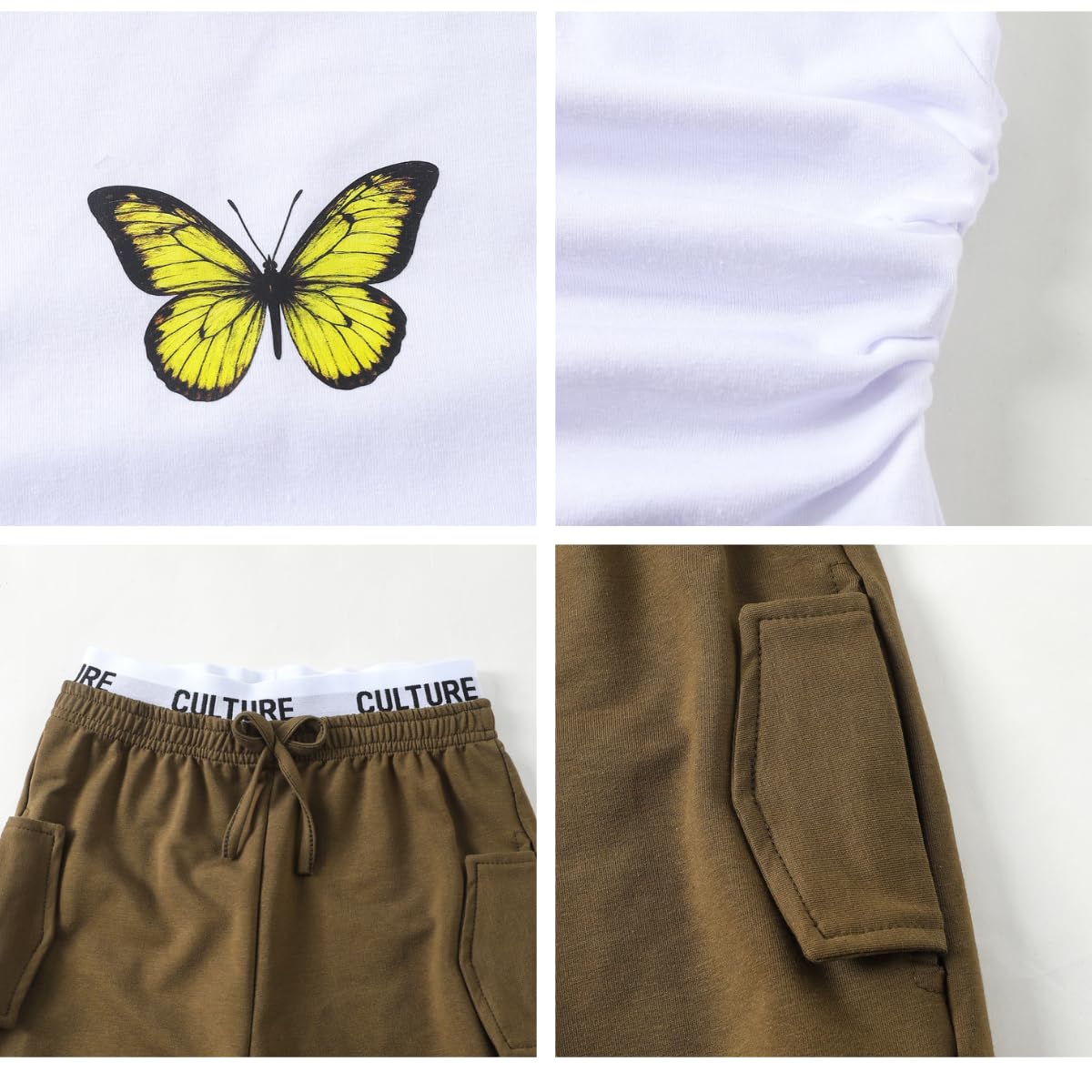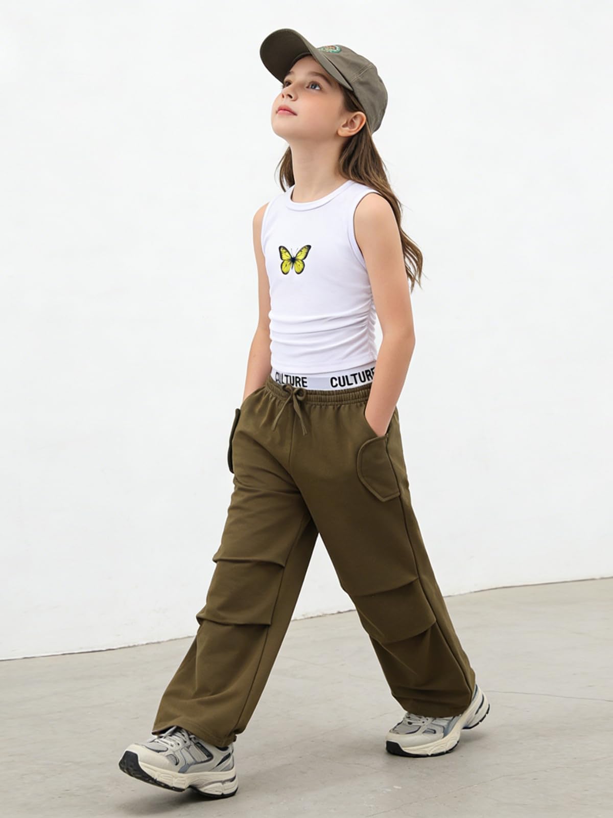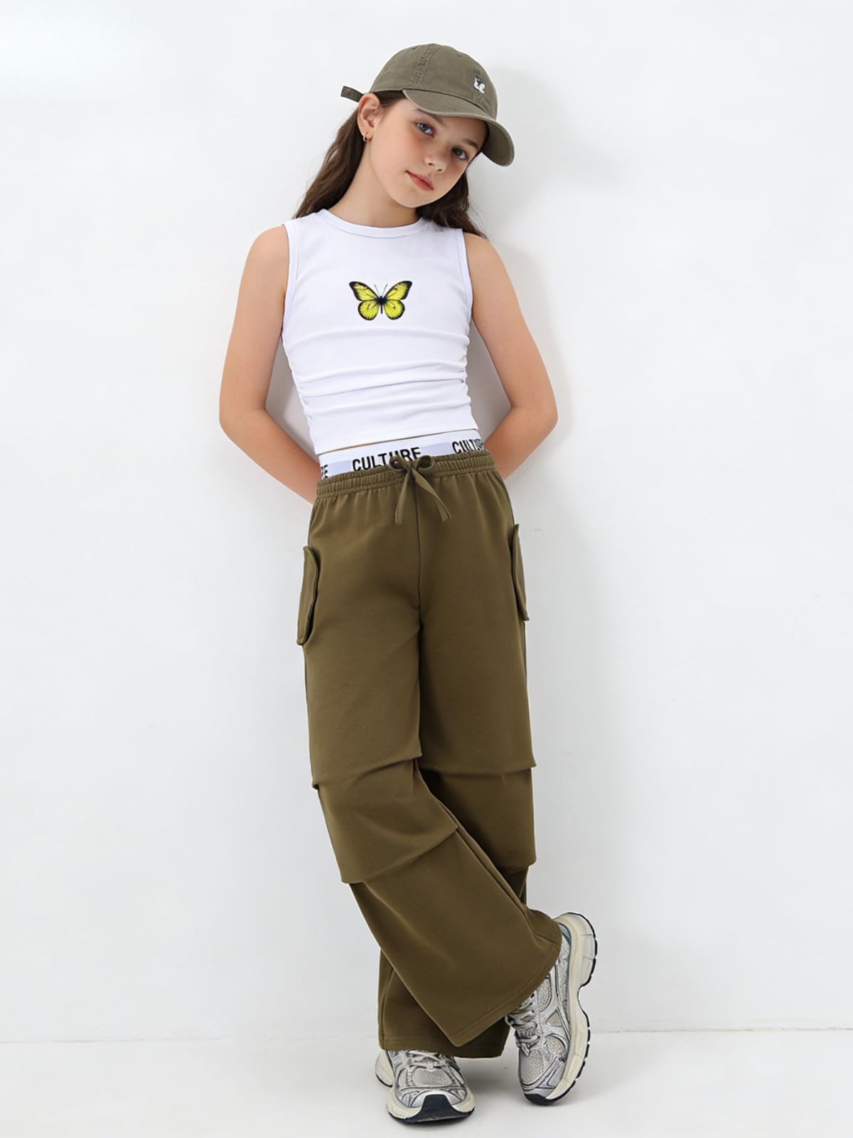 Design Features: This girls 2 piece outfits pairs a butterfly-printed sleeveless tank with wide-leg pants, featuring a drawstring waist for different body shapes. Simple yet sweet, it helps outfits for girls create a fashionable vibe easily