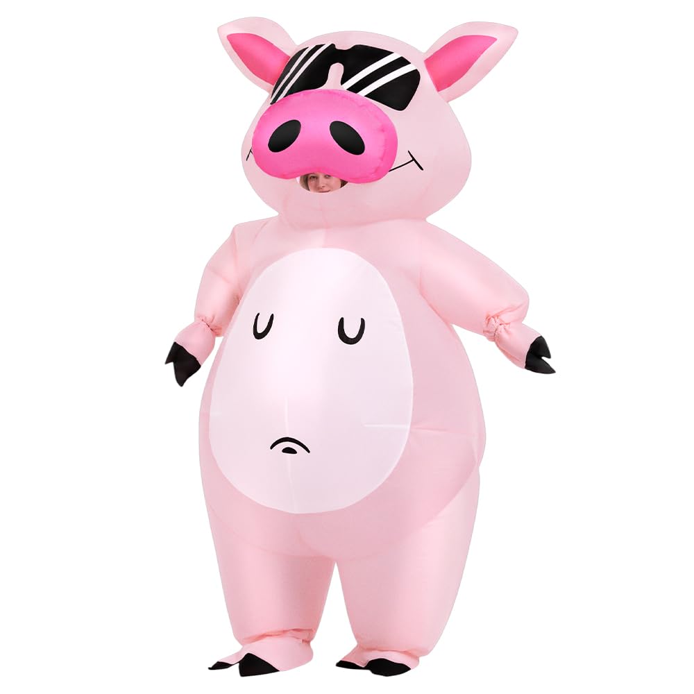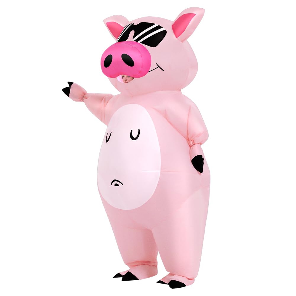【Inflatable Pig Costume Design】This Halloween inflatable costume features a Pig pattern and a unique design.It has a round and chubby body, wearing a cool pair of sunglasses, full of energy, and walks effortlessly. Our pig blow up costume is fit for adults with a height range of 150cm-180cm [4.92ft-5.9ft] adults.