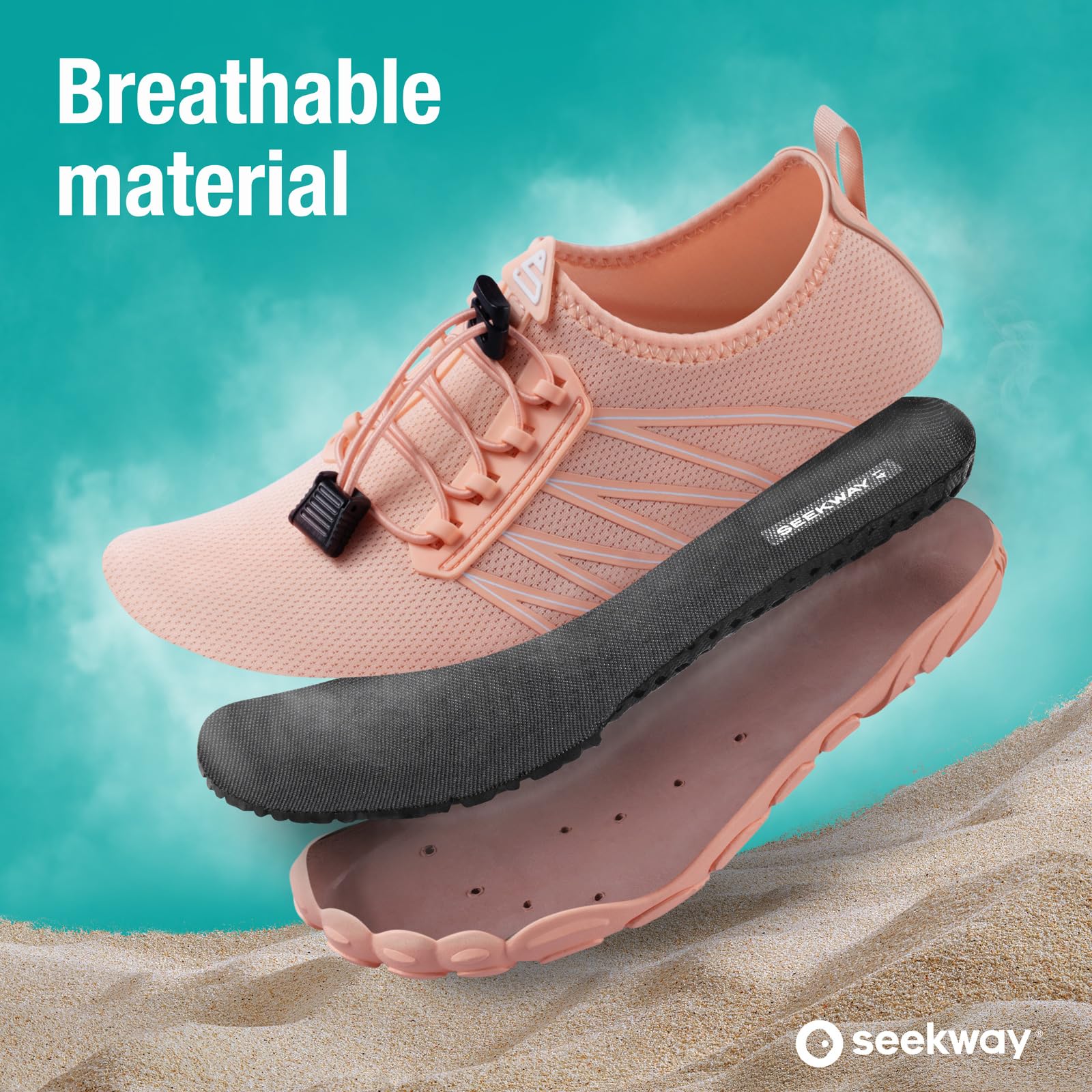 Breathing shoes:The shoe was designed to be ultra-breathable: Spandex vamp has tiny air holes for quick drying and the outsoles、insoles are designed with drainage holes to drain the water.This forms a perfect breathing system that keeps your feet cool and dry, from the inside to the outside.
