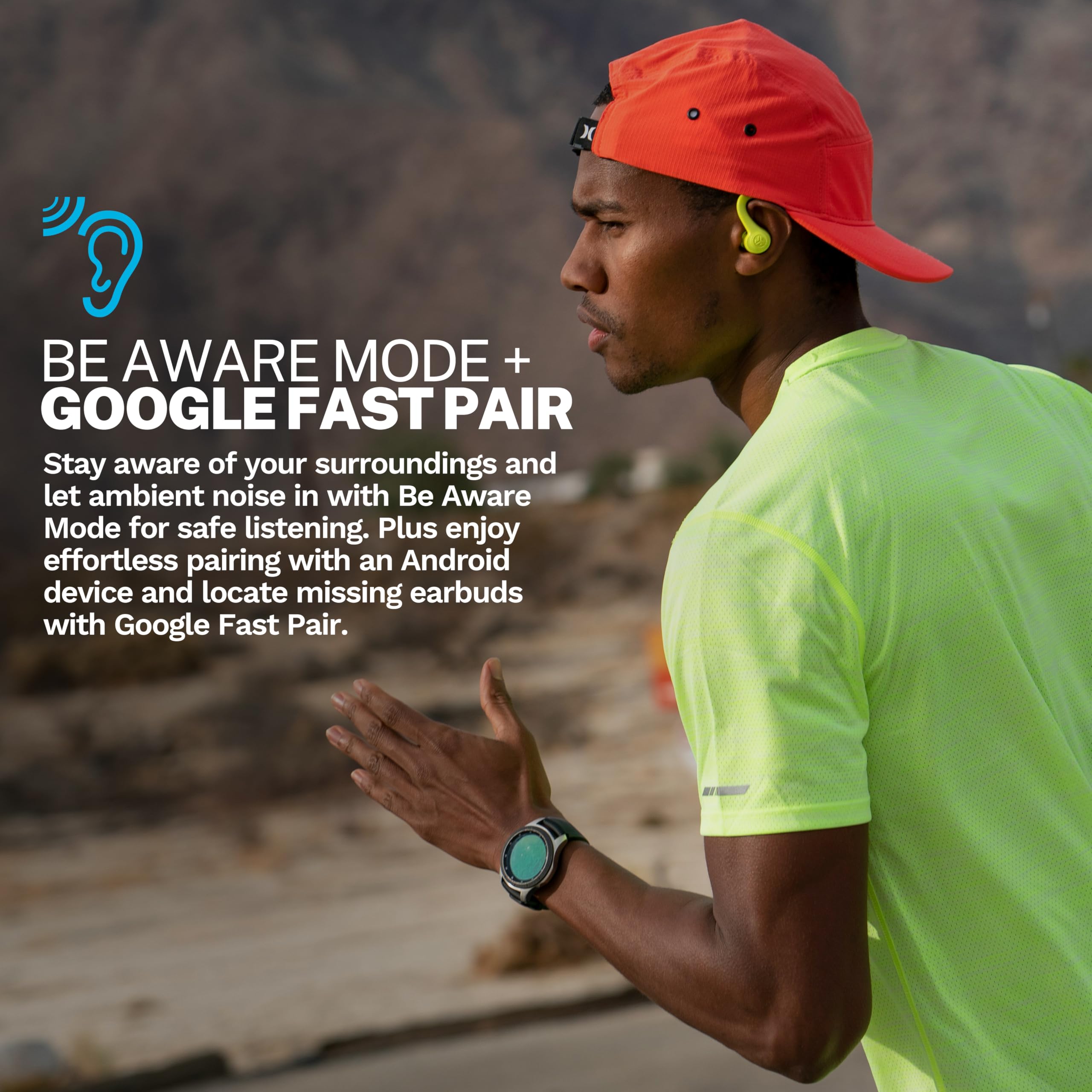 Be Aware Mode + Google Fast Pair: Stay aware of your surroundings and let ambient noise in with Be Aware Mode for safe listening. Plus enjoy effortless pairing with an Android device and locate missing earbuds with Google Fast Pair
