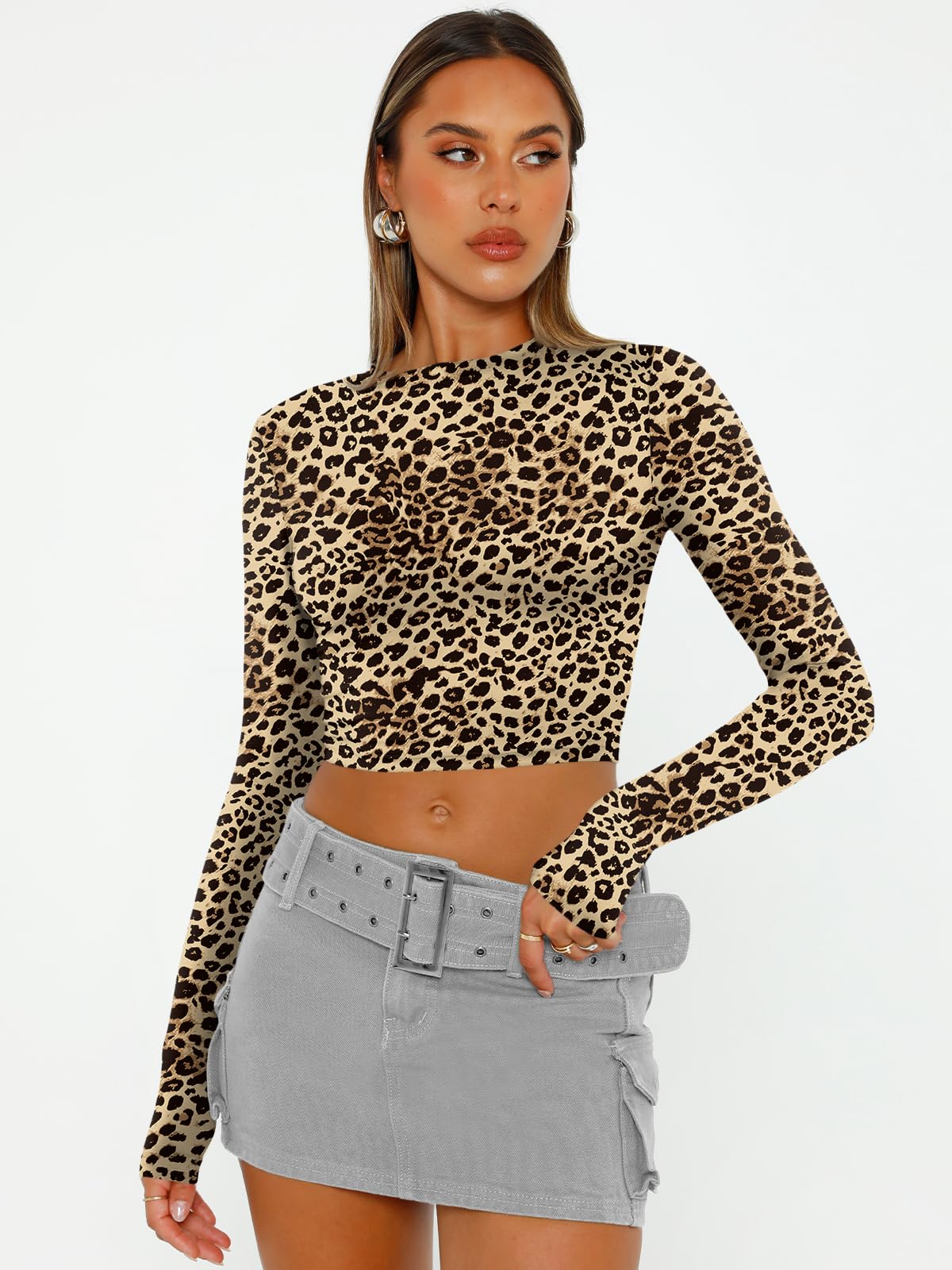 Y2k Design: Cropped and regular style,you can wear it regularly or fold it up like a crop top.cute,slim fitted,casual style,scoop neck,long sleeve shirts.