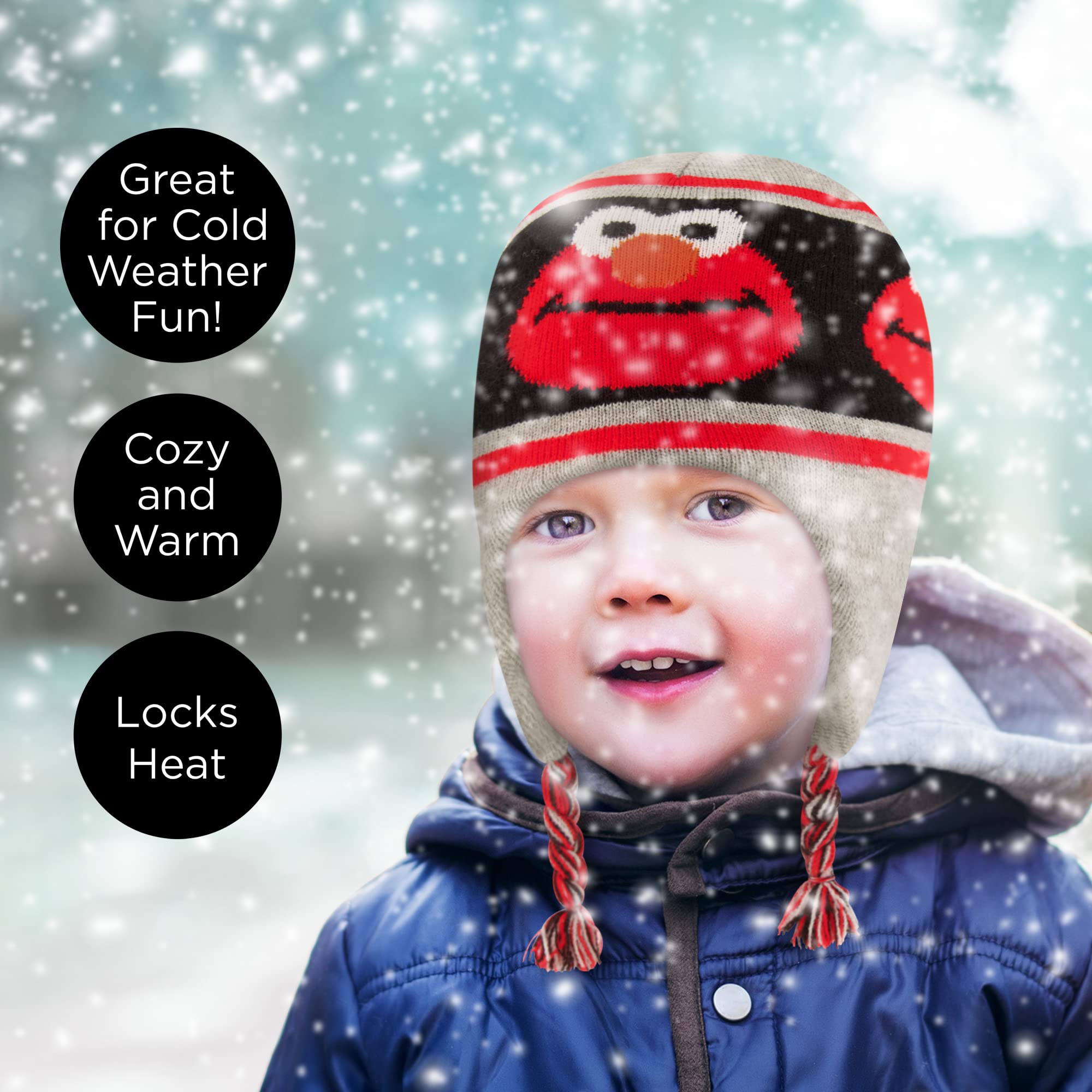 ADORABLE DESIGN: Matching Elmo pattern Winter Hat and toddler Mitten set with thick earflaps, and features Elmo character patch embroidered on the front. Matching Blue/Grey/Orange Toddler Mittens with a Blue/Grey/Orange cuff features an Elmo gripper print design, Great coverage for the Head, Ears, and their cute little Hands.