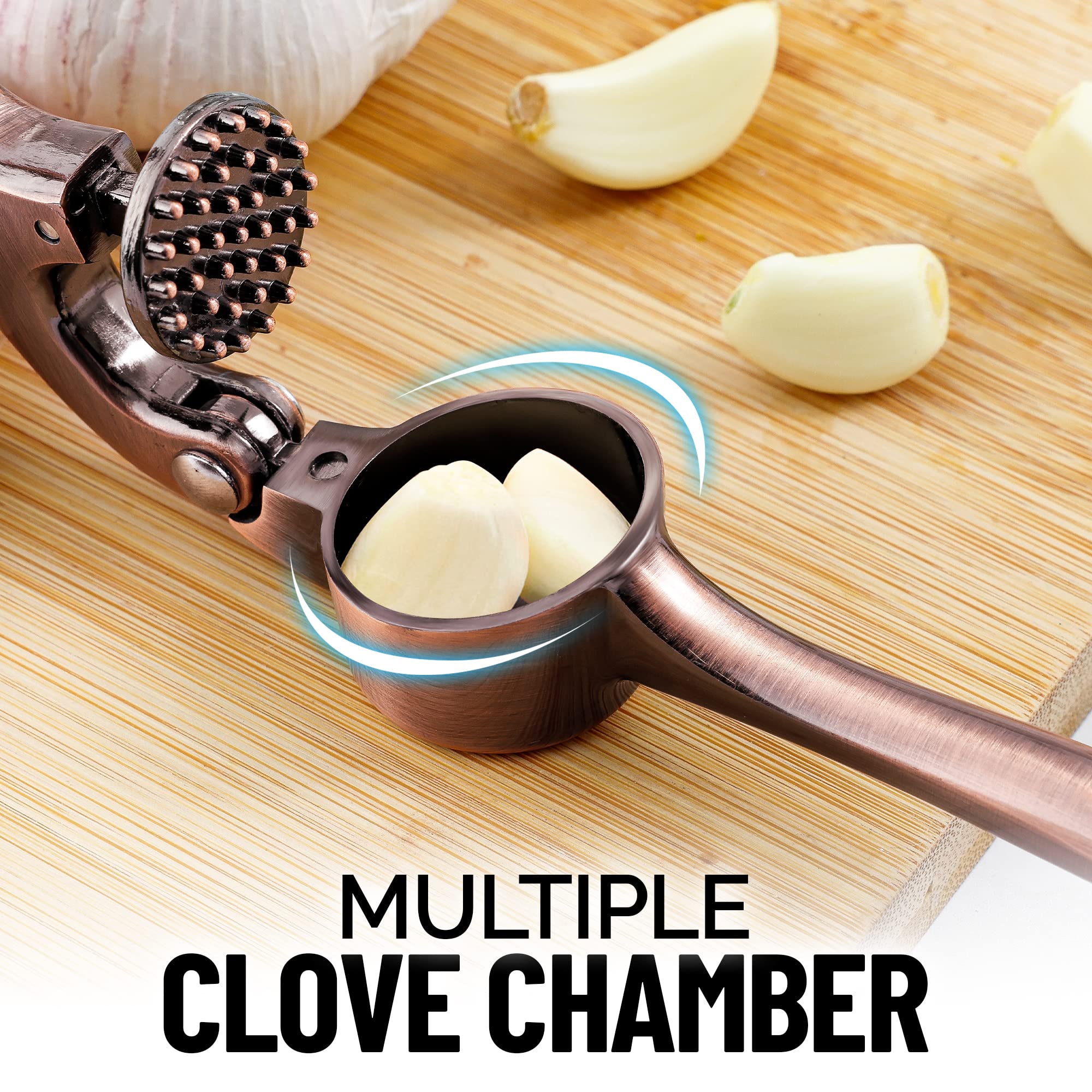 CRUSH AND MINCE UNPEELED CLOVES: No more strong garlic odor or sticky residue lingering on your hands! Our garlic mincer is designed with a comfortable ergonomic handle that requires minimal effort on your wrists and hands to peel, crush, and mince the cloves in one go; yielding delicious garlic paste while the peels stay in the chamber.