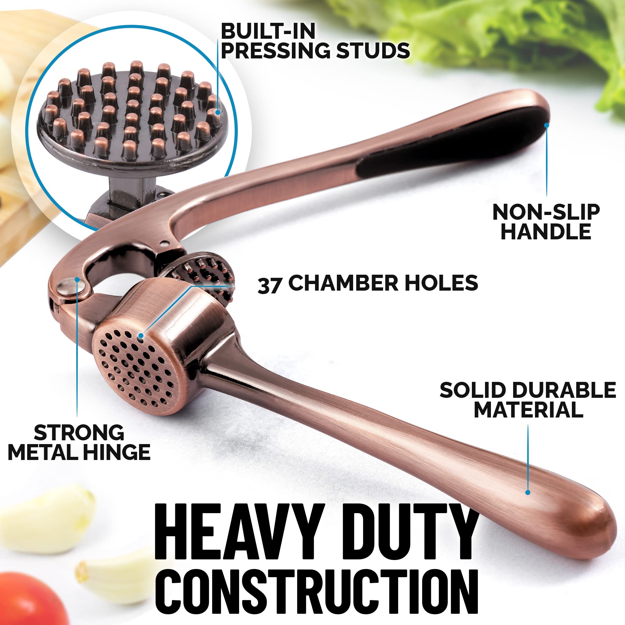 SIMPLE TO USE & BUILT TO LAST: Our premium quality garlic press is constructed from food-grade, rust-resistant materials meant to be among your favorite kitchen gadgets for years to come. This garlic and ginger mincer is designed with built-in studs to extract more paste within seconds. It is great for both professional and home kitchens.