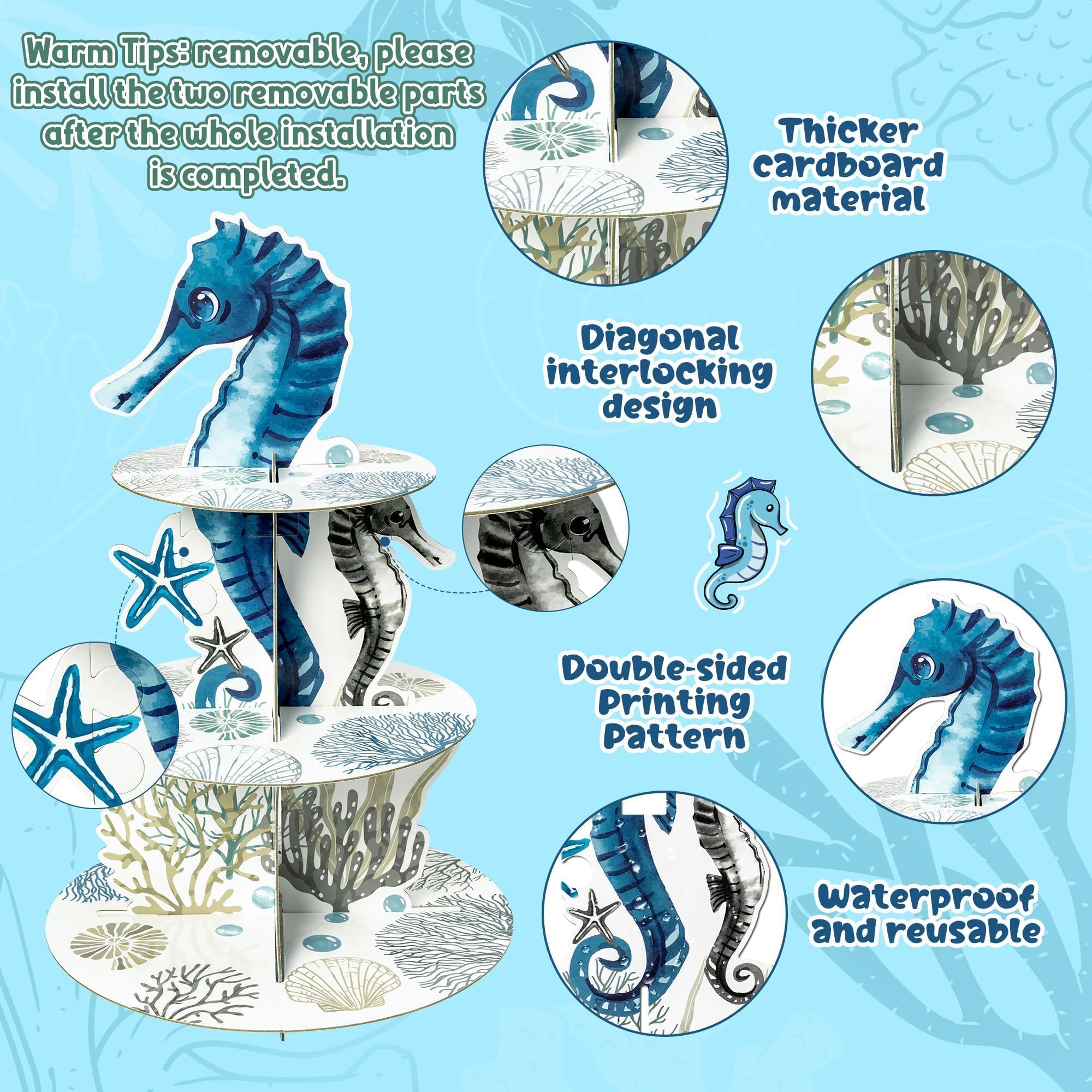 Attractive Design: The cake rack is designed with the ocean animals as a whole, with the unique elements of Shanghai bottom to create an atmosphere in the sea world, and the double-sided printing makes the overall visual presentation effect more surprising and perfect.