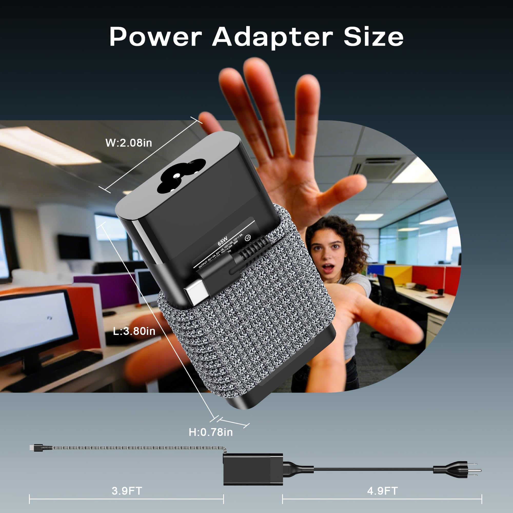 Input:100-240V 1.5A,50-60Hz; Output:5V 3A /9V 3A /12V 5A /15V 4.33A /20V 3.25A, Power: 65w USB Type C