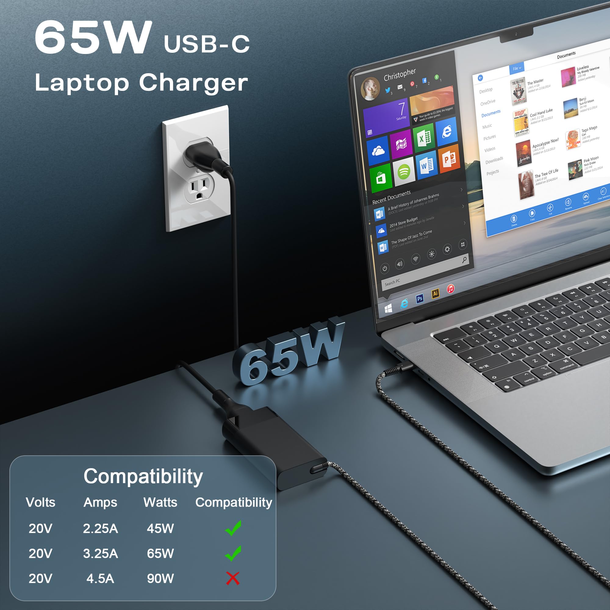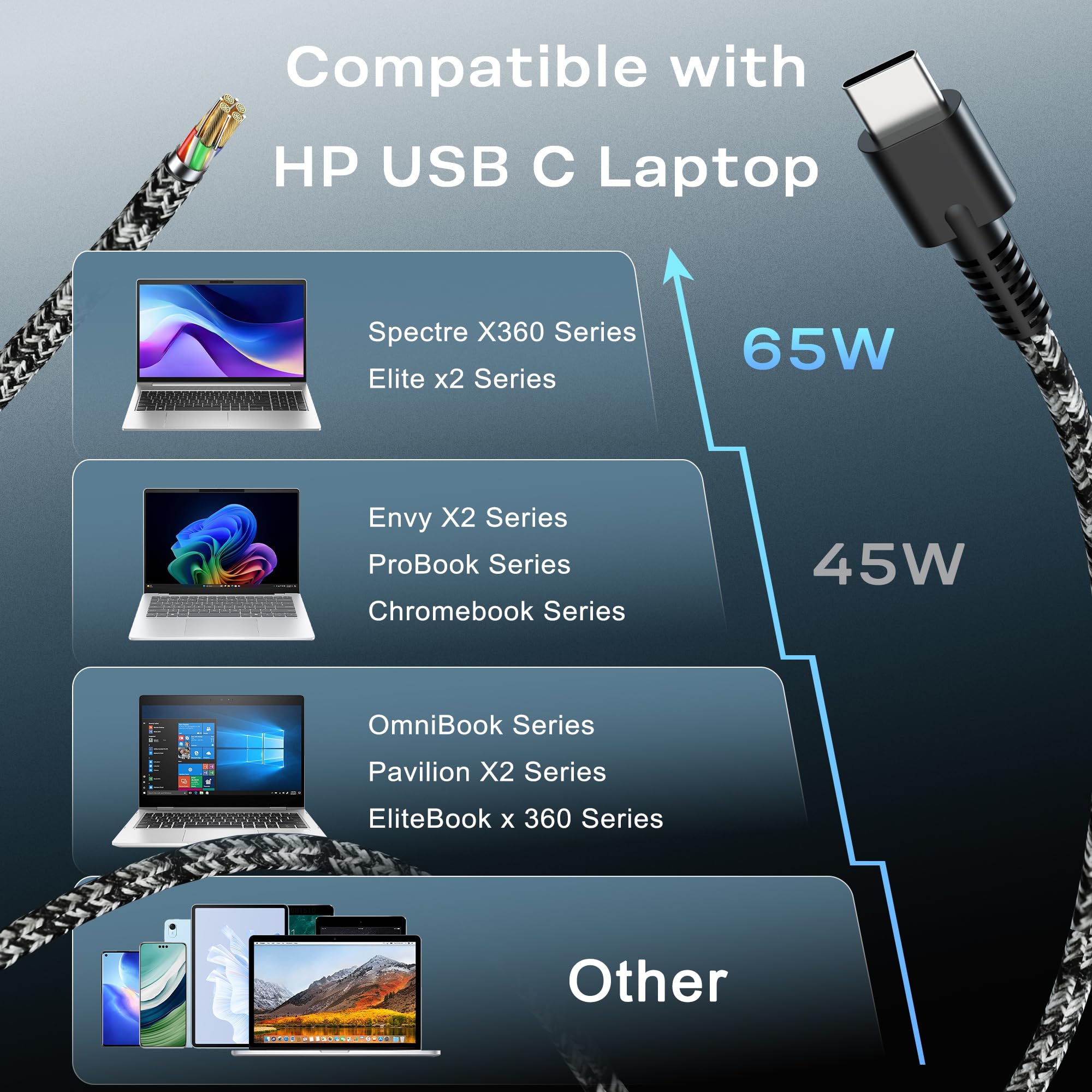 WZXHU 65W Type C Computer Charger compatible with HP Envy X360 X2: 12-E000 13-G000 12-e011nr 12-e068ms 12-e091ms 12-g018nr,Elite x360 x2: Pro x2 612 G2 table , 1012 G1 G2 , 1013 G3 , 210 G2,Elitebook x360 1020 G2, 1030 G2,1030 G3,1030 G4,1030 G5,1030 G6,1030 G7,1030 G8,1040 G4,1040 G5,1040 G6,1040 G7,1040 G8,1040 G9,EliteBook 735 G6, 735 G5, 755 G5, 840 G6, 840 G4, 850 G6, 850 G5