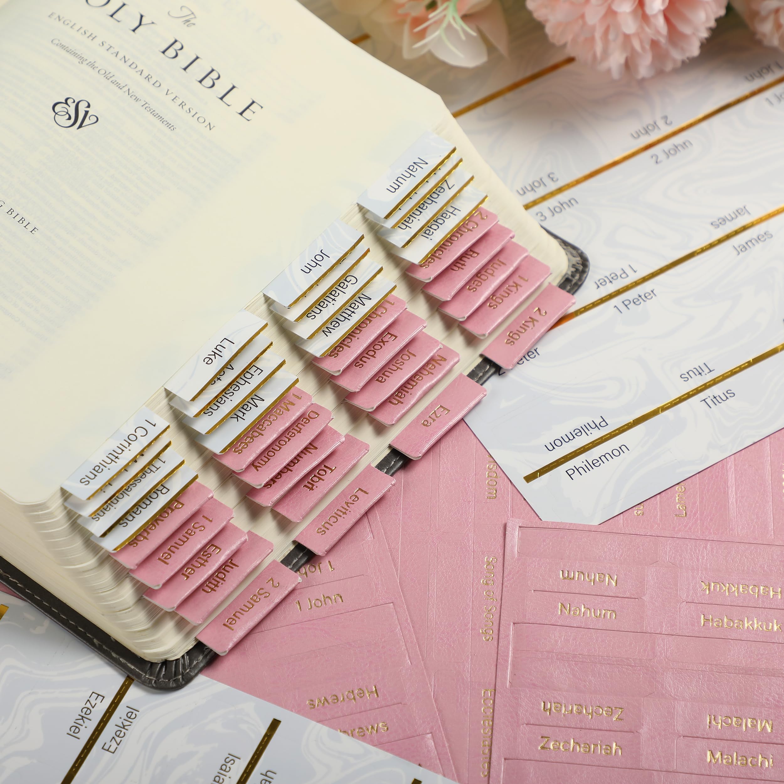 Elevate your Bible study with Mr. Pen Leather Bible tabs, featuring 160 beautifully designed tabs in soft pink and white tones, perfect for adding a graceful touch to any Bible.
