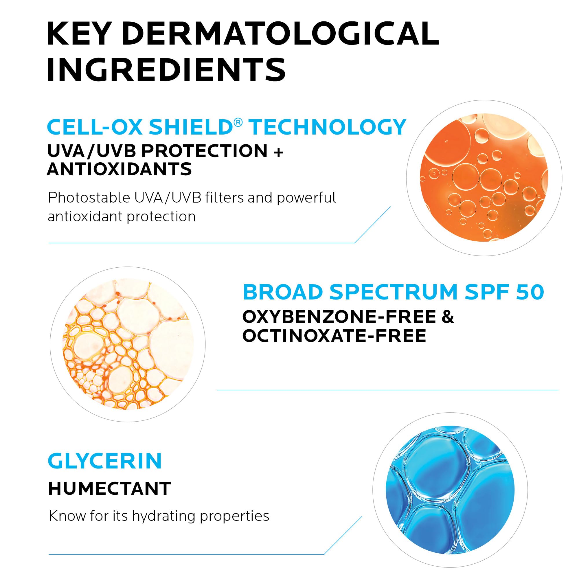 Cell-Ox Shield Technology: A key antioxidant technology in the Anthelios sun care range. It combines photostable UVA/UVB filters to deliver broad spectrum protection and powerful antioxidant protection.