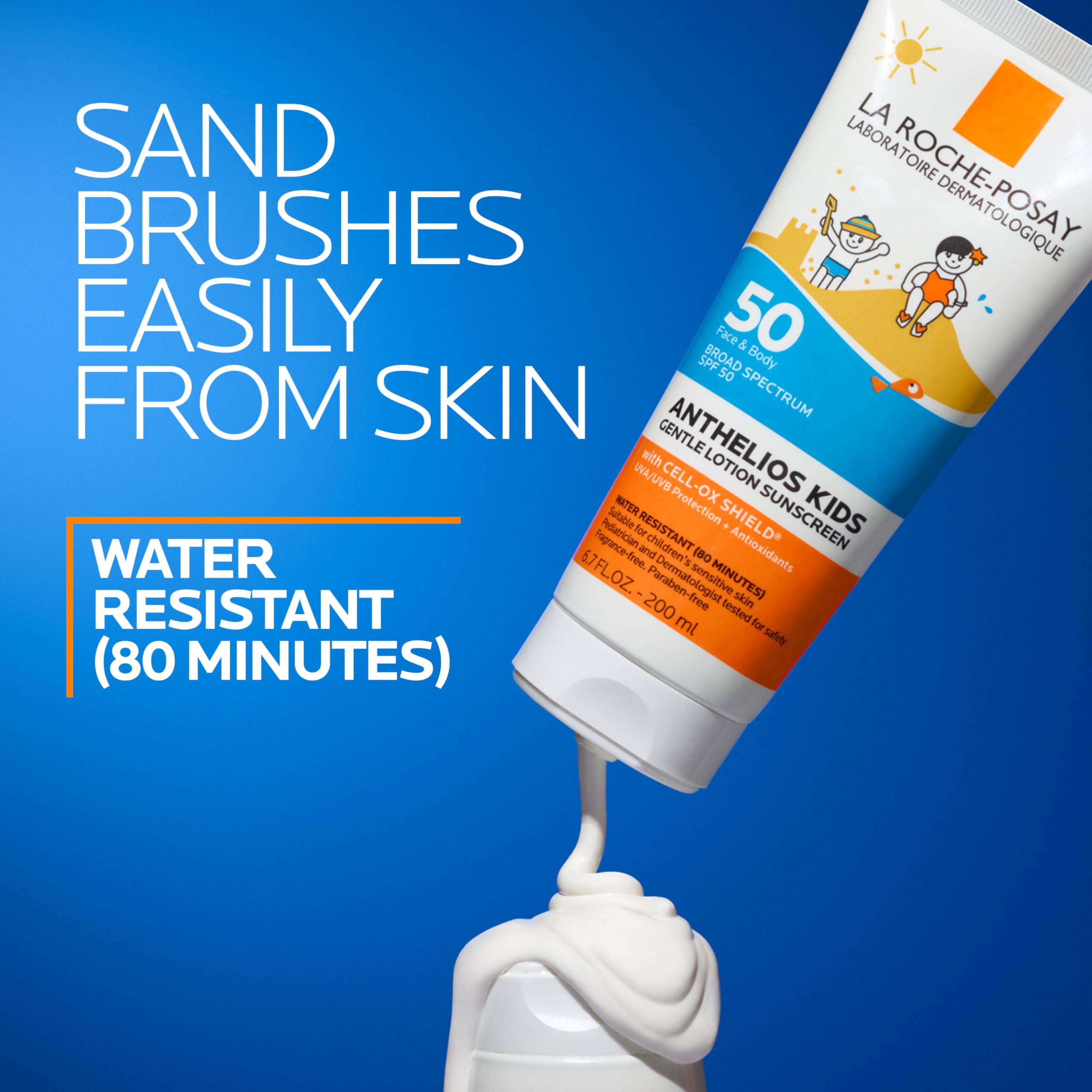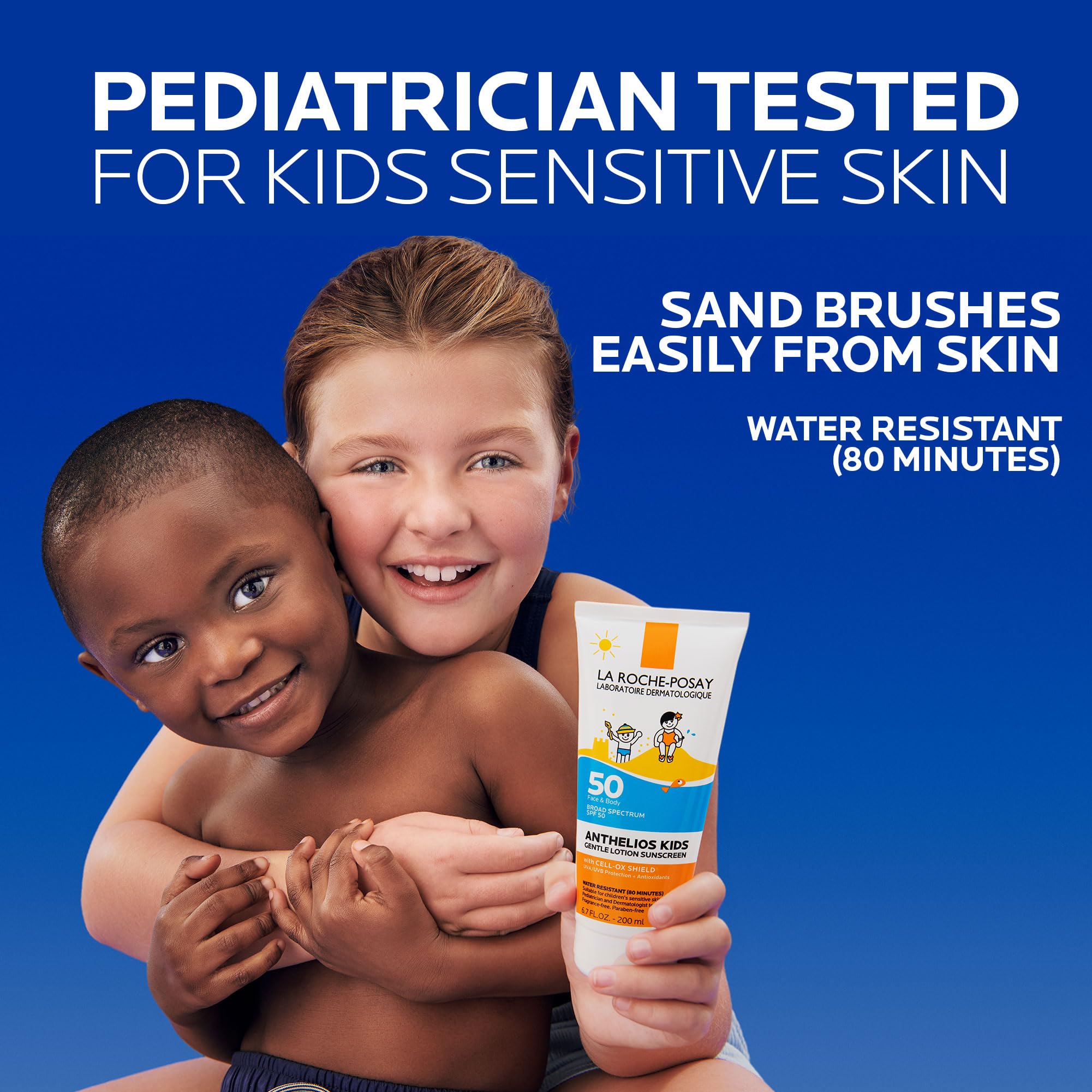 Discover La Roche-Posay Sunscreen for kids face and body. This gentle lotion sunscreen with UVA/UVB protection blends easily into all skin tones and is water resistant (80 minutes). Pediatrician and Dermatologist Tested. | Lightweight, comfortable texture specifically developed to be gentle on children's skin & leaves skin feeling soft, smooth and moisturized . | Blends easily on all skin tones without leaving a white cast on skin and sand brushes easily from skin after application. | Formulated with Cell-Ox Shield® Technology: broad spectrum UVA/UVB protection plus antioxidants. | Paraben Free, Oxybenzone Free & Fragrance Free | Allergy tested & Dermatologist Tested for Safety | Non-comedogenic | Children's Travel Size Sunscreen SPF 50