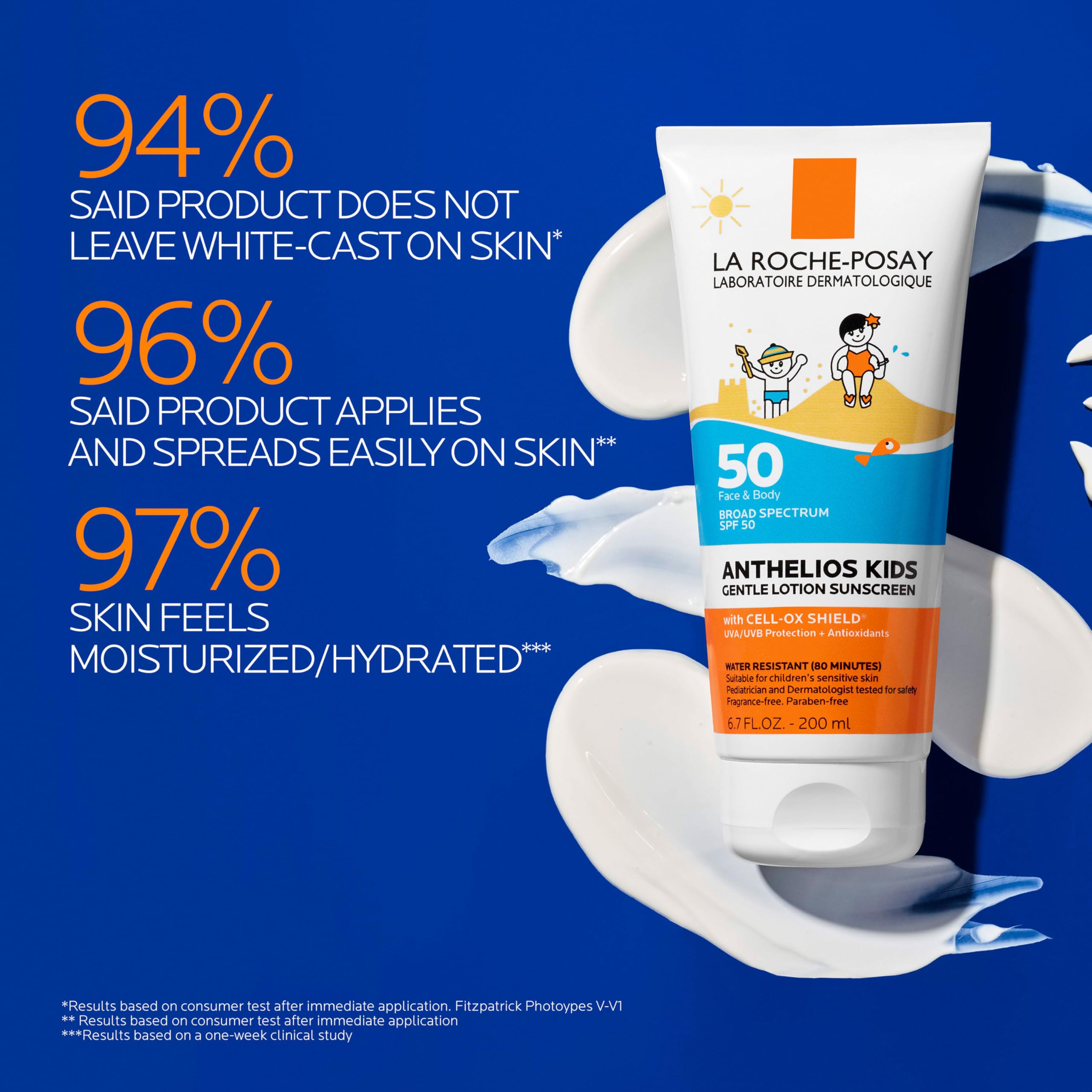 La Roche-Posay Anthelios Kids Gentle Lotion Sunscreen SPF 50, Broad Spectrum SPF + Antioxidants, Sunscreen For Kids, Octinoxate & Oxybenzone-Free, Pediatrician Tested, Non Comedogenic, Oil Free