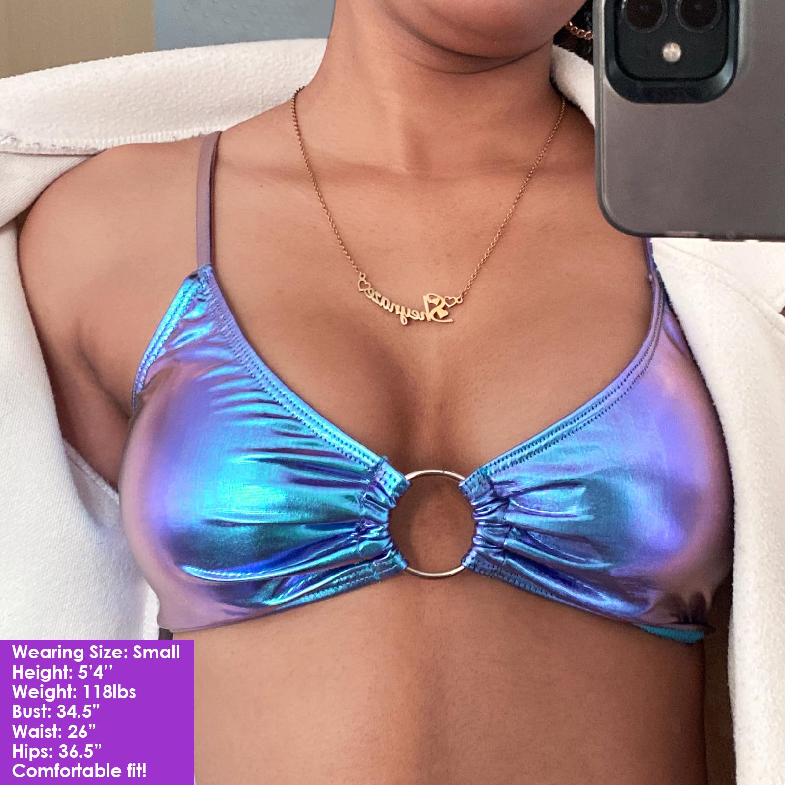 Multi-Wear Design: Wear it as a bikini top for the beach, a crop top for festivals, or a stylish bralette for parties and nights out. Combining comfort and a bold look, this blue metallic top is a must-have for creating unforgettable outfits
