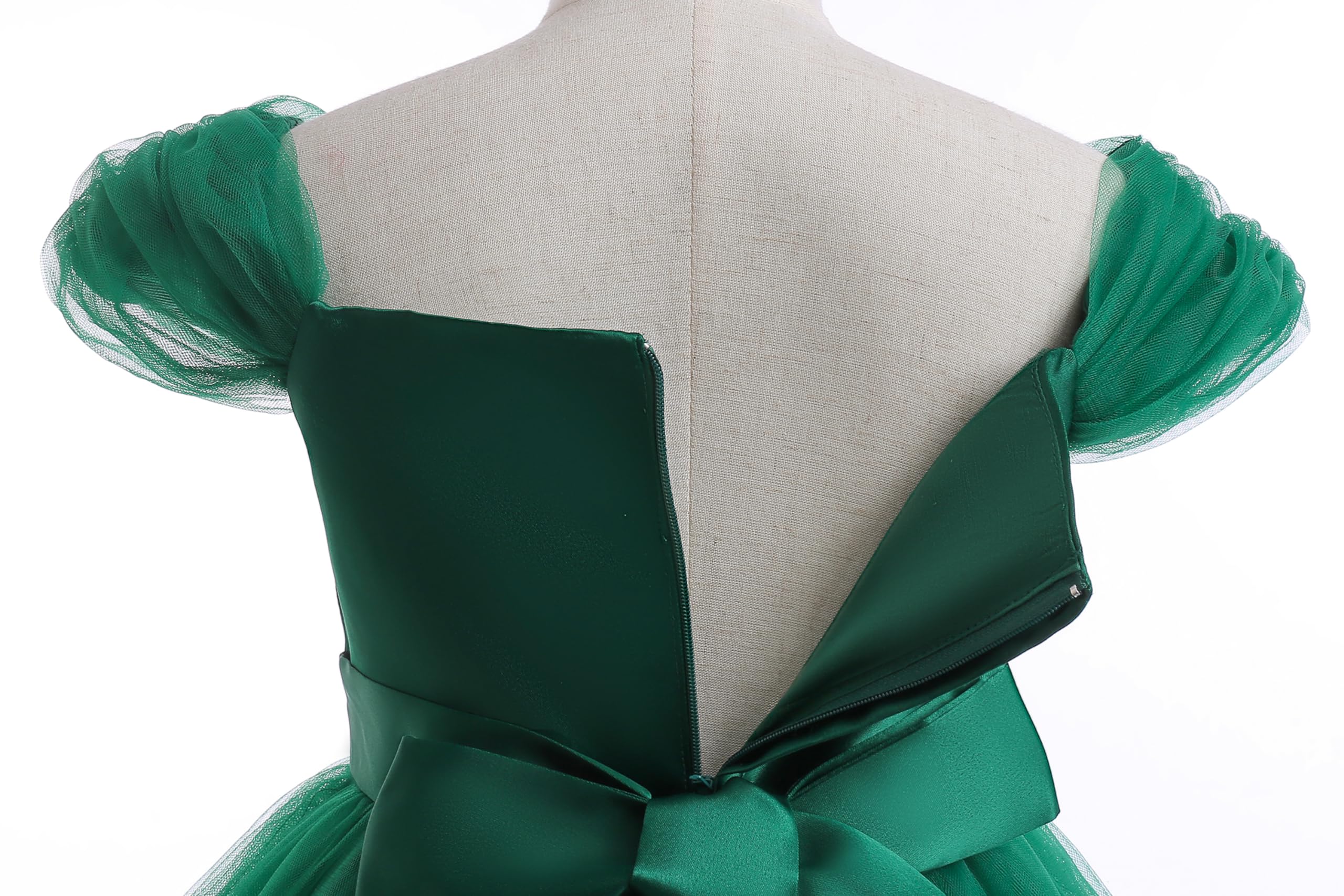 For the optimal fit, compare our garment dimensions (Click 'Size Chart' for details) to an existing dress of similar style, not your child's body measurements. Note that the size chart provides age ranges as a reference only; select the size based on actual measurements, not age. We recommend kids under 10Y choose SIZE DOWN; kids older than 10Y, refer to the detailed size chart. Emerald green flower girl dress, big girls lace bridesmaid dress, kids ball gown dress, little girls Christmas dresses