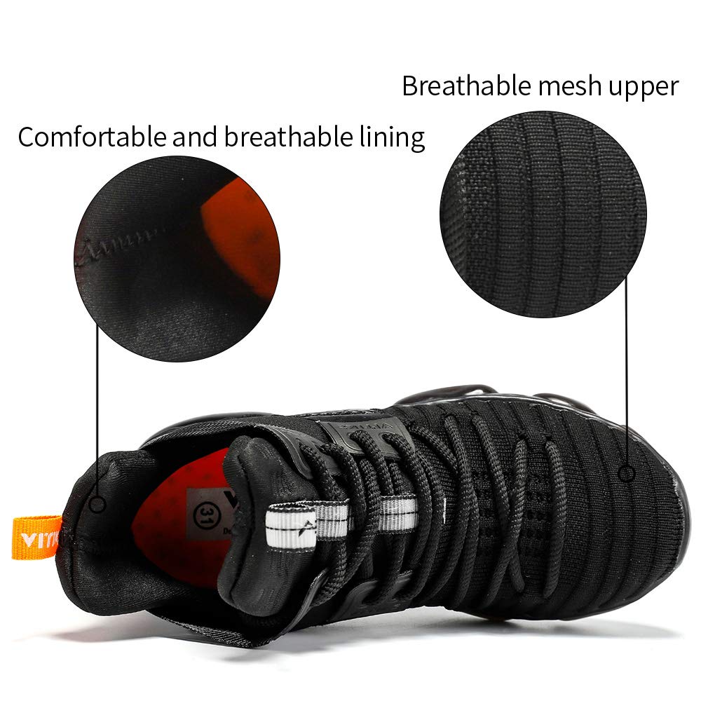Description Boys Basketball Shoes Kids Basketball Sneakers Girls Non-slip Outdoor Training Shoes Mid Top Running Shoes Comfortable Boys Sports Shoes Durable Indoor Court Shoes Little Kid/Big Kid The design of the boys basketball shoes is to protect children's safety as the primary purpose. Therefore, we use non-slip and wear-resistant TPR outsole and air cushion midsole,they will play a role in shock absorption and cushioning during exercise, in order to provide sufficient safety for children. Our kids basketball shoes feature a mesh upper and skin-friendly lining that are breathable and stretchy. The soft and high-quality fabrics make children's feet more comfortable.High-top basketball shoes can protect children from sprains during intense sports. SIZE CHART 11 little kid=EU 28= 18.7CM(inner length) 11.5 little kid=EU 29= 19.3CM(inner length) 12.5 little kid=EU 30= 20CM(inner length) 13 little kid=EU 31= 20.7CM(inner length) 1 little kid=EU 32= 21.3CM(inner length) 1.5 little kid=EU 33= 22CM(inner length) 2.5 little kid=EU 34= 22.7CM(inner length) 3 big kid=EU 35= 23.3CM(inner length) 4 big kid=EU 36= 24CM(inner length) 5 big kid=EU 37= 24.7CM(inner length) 6 big kid=EU 38= 25.3CM(inner length) 6.5 big kid=EU 39= 26CM(inner length) 7 big kid=EU 40= 26.7CM(inner length) 8 big kid=EU 41= 27.3CM(inner length)