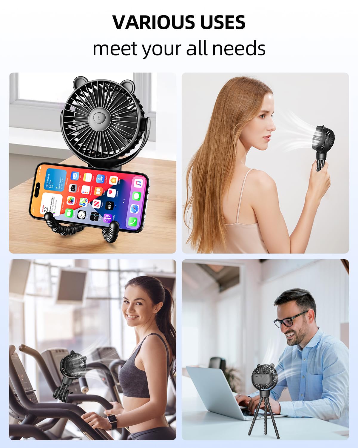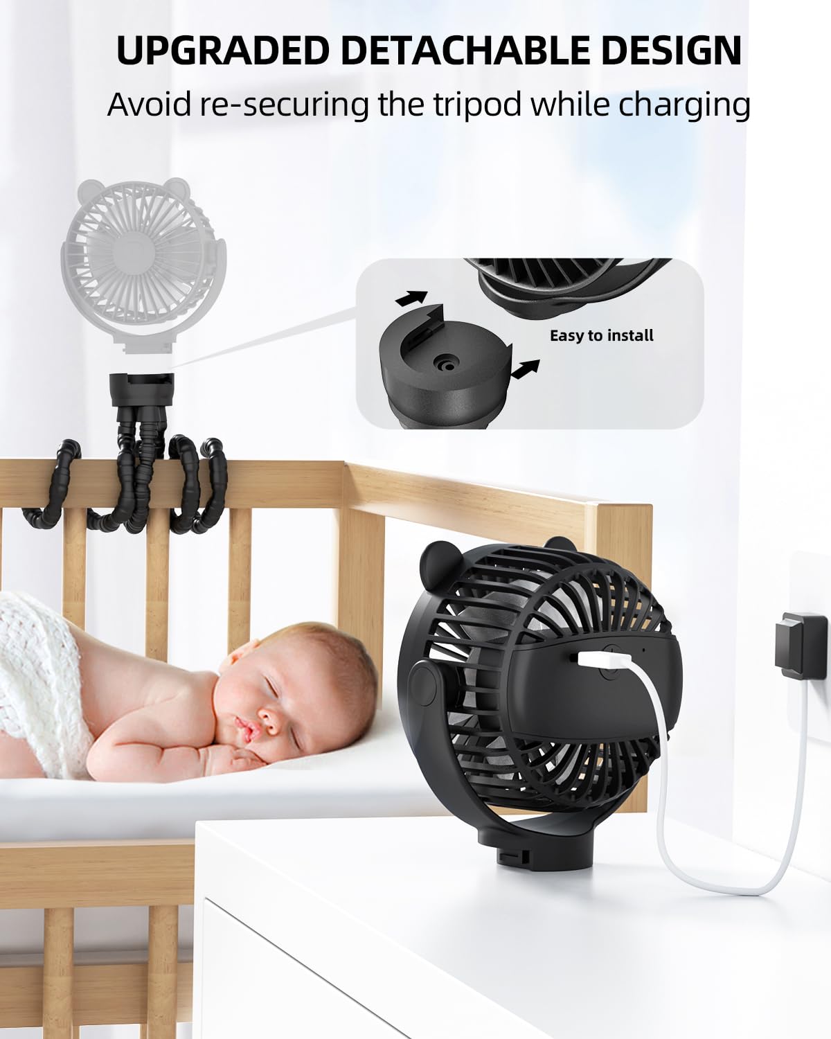 FLEXIBLE-TRIPOD-CLIP: The fan is equipped with a flexible tripod clip, which can be easily attached to the stroller handlebar, car seat, crib, bike seat, treadmill, or any other flat surface. It is convenient to use and provides a stable cooling effect.
